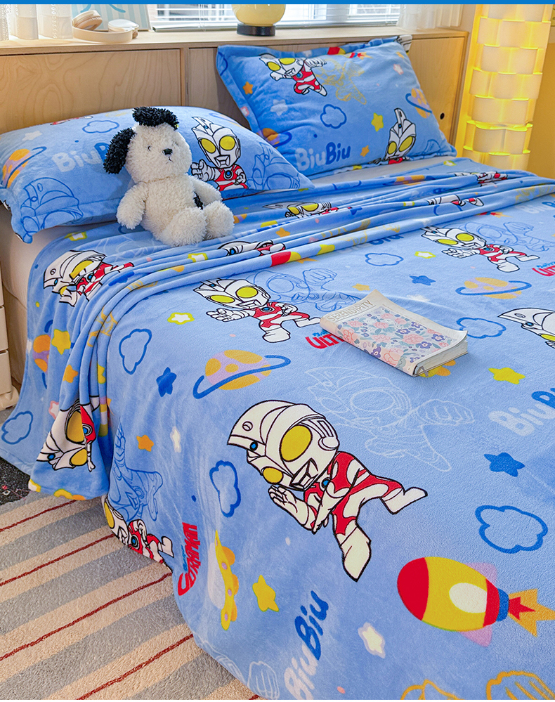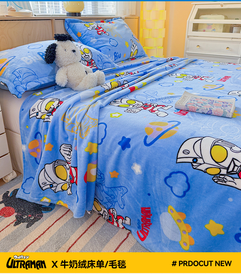 名兮家居 2025新款经典奥特曼-三丽鸥高克重牛奶绒床单 闪电艾斯