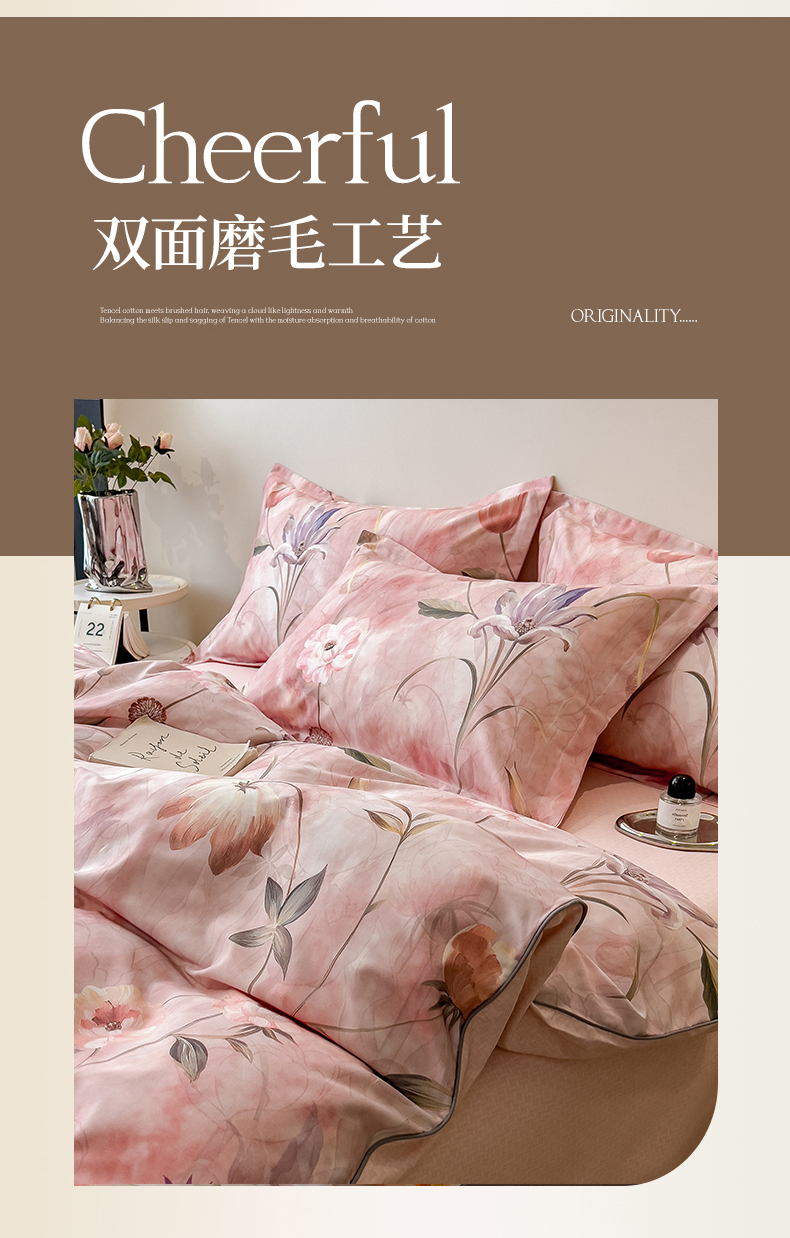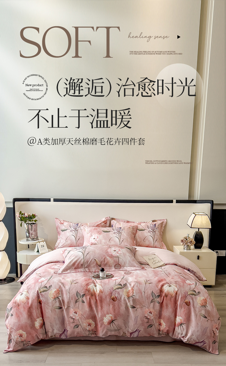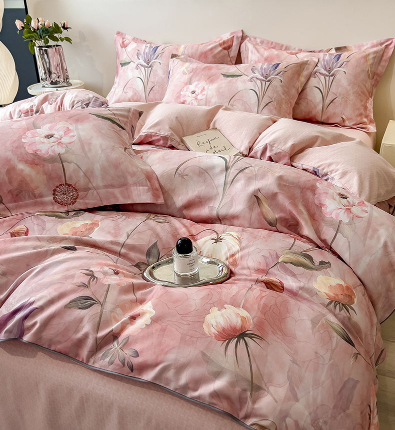 芃成家纺 2025新款A类加厚天丝棉磨毛花卉四件套 心语花香