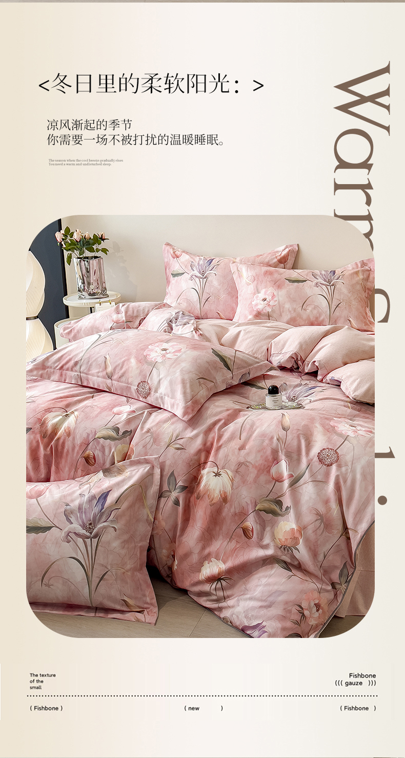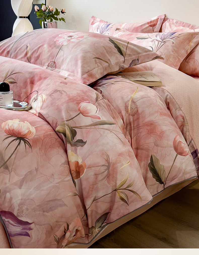 (总)芃成家纺 2025新款A类莱赛尔天丝棉四件套,梦幻花海,缤纷花语,国色天香,花开如画,花舞,奥斯汀玫瑰,春暖花开-粉,春暖花开-紫,春色写意-灰,春色写意-兰,冬雪寒香,繁花满庭,古典玫瑰,国色花韵-粉,国色花韵-玉,花涧入梦,秘境灰,莫奈花园,青花瓷,秋日私语,水墨花卉,晚秋,絮语,烟云牡丹