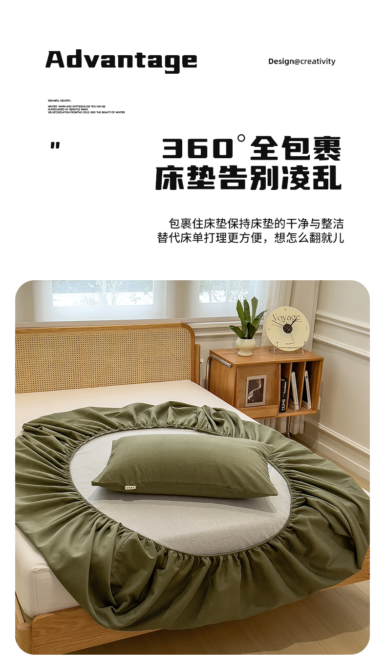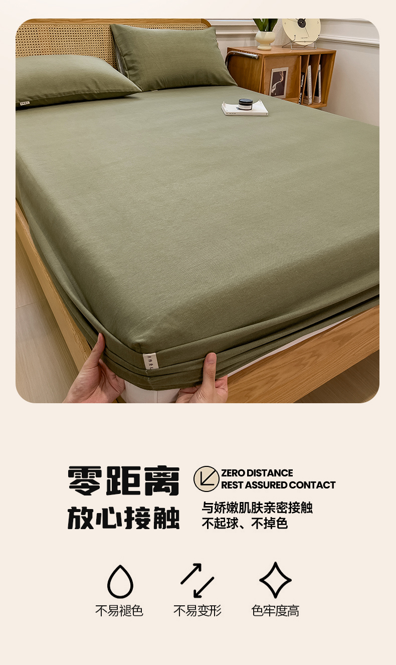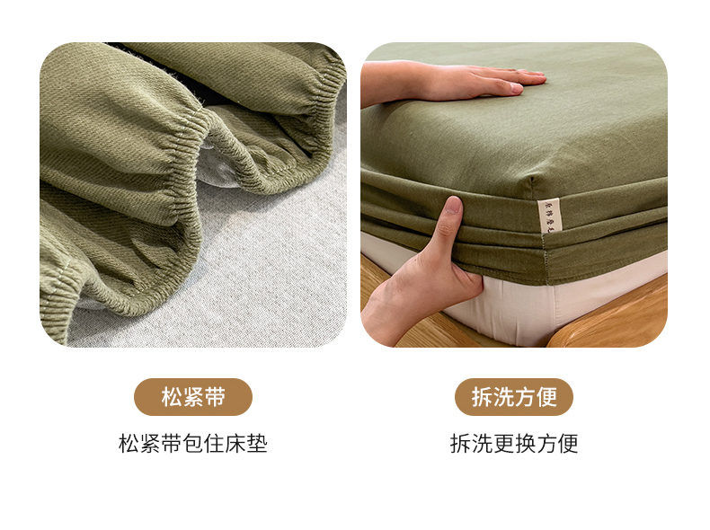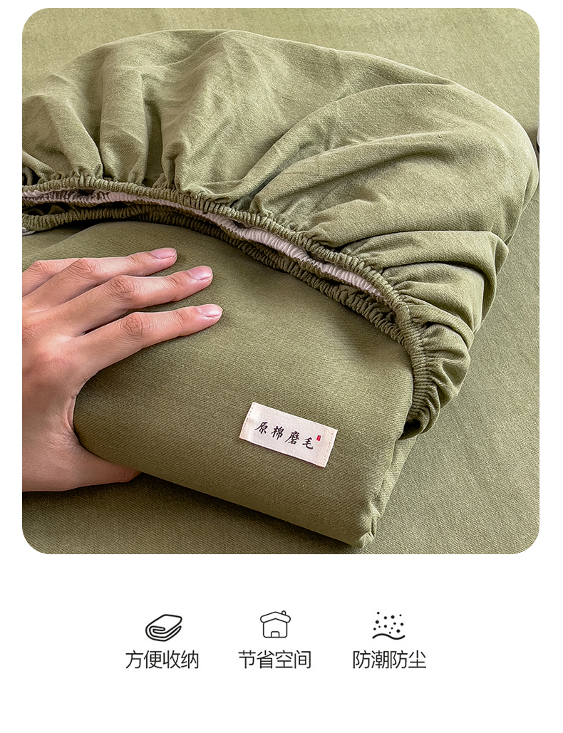 商品名称:芃成家纺 2025新款原棉生态磨毛单床笠 松针绿