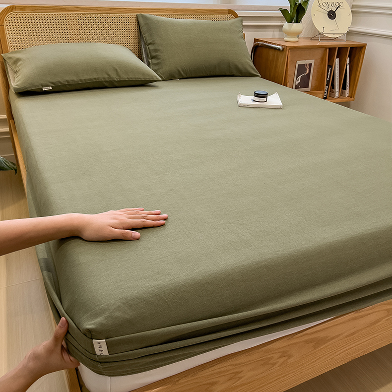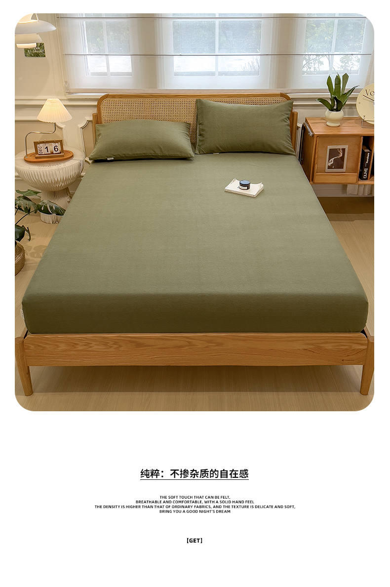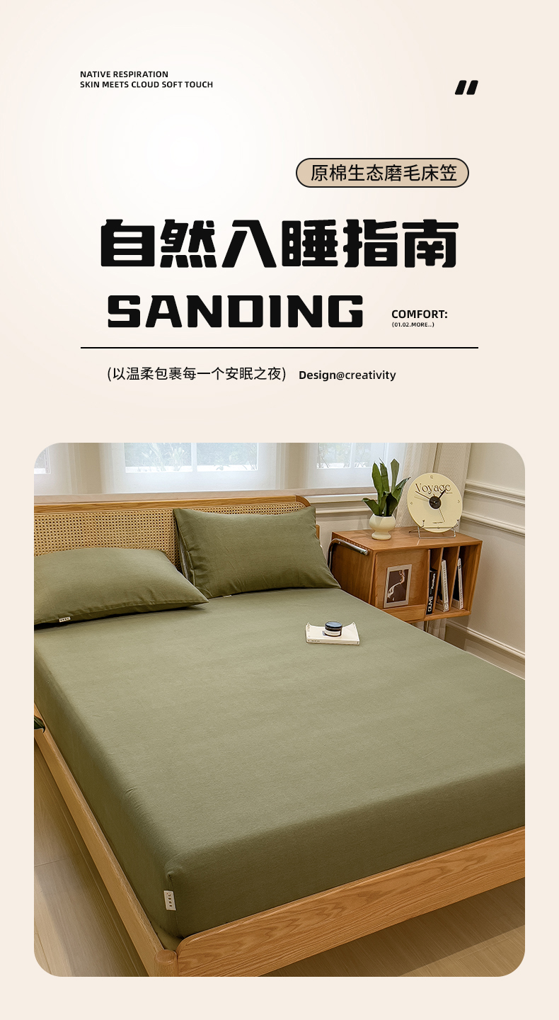 芃成家纺 2025新款原棉生态磨毛单床笠 松针绿