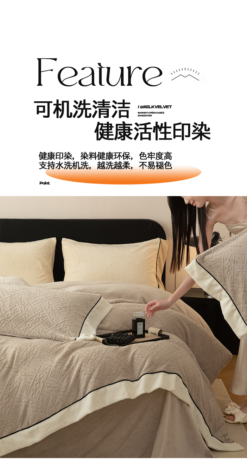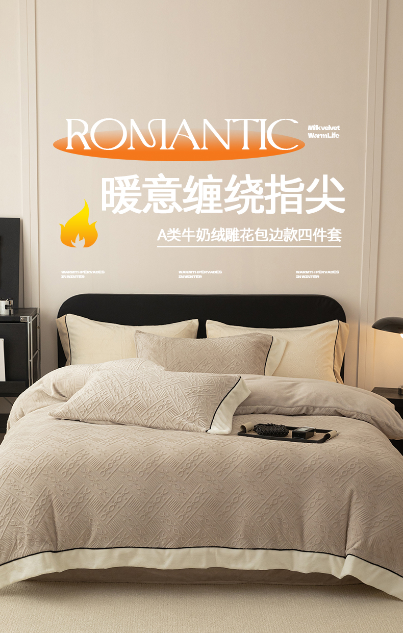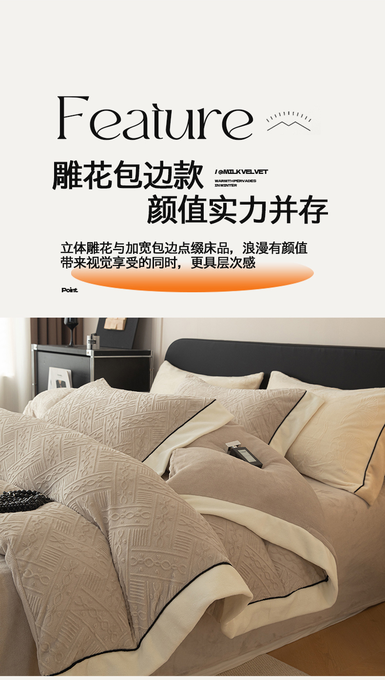 典曼家纺 2025新款A类纯色雕花牛奶绒四件套 诺亚