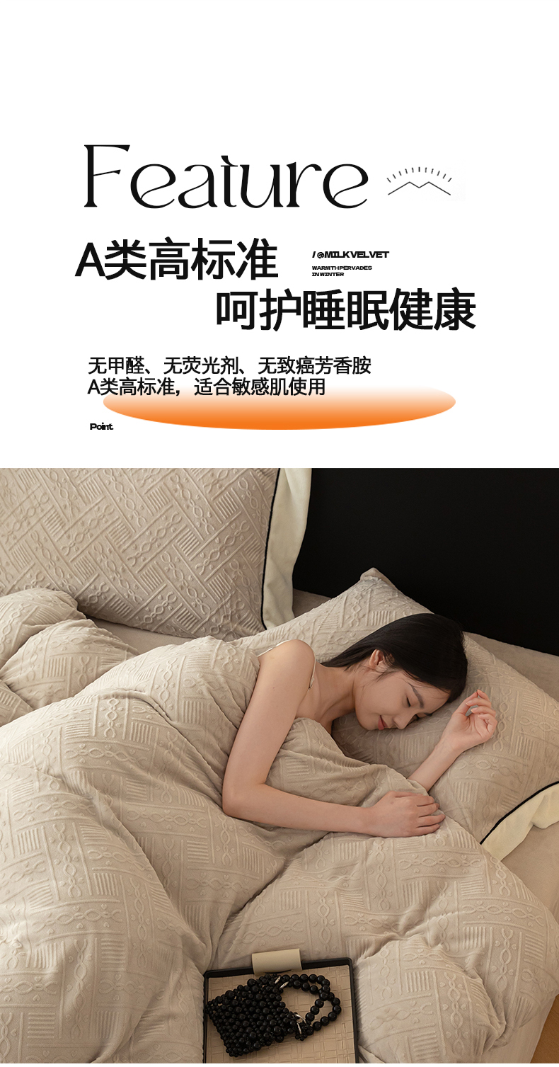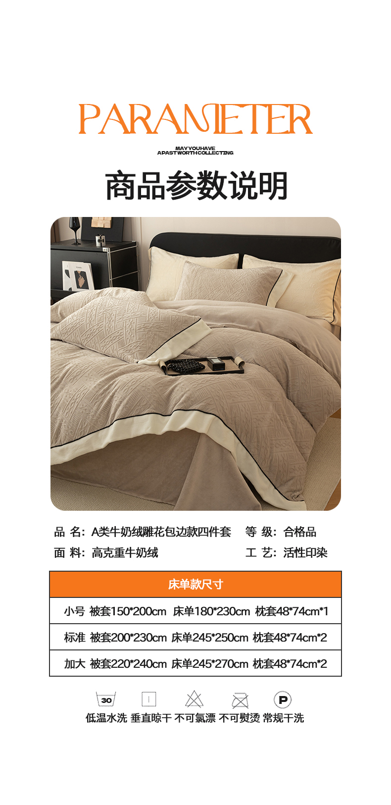 商品名称:典曼家纺 2025新款A类纯色雕花牛奶绒四件套 诺亚