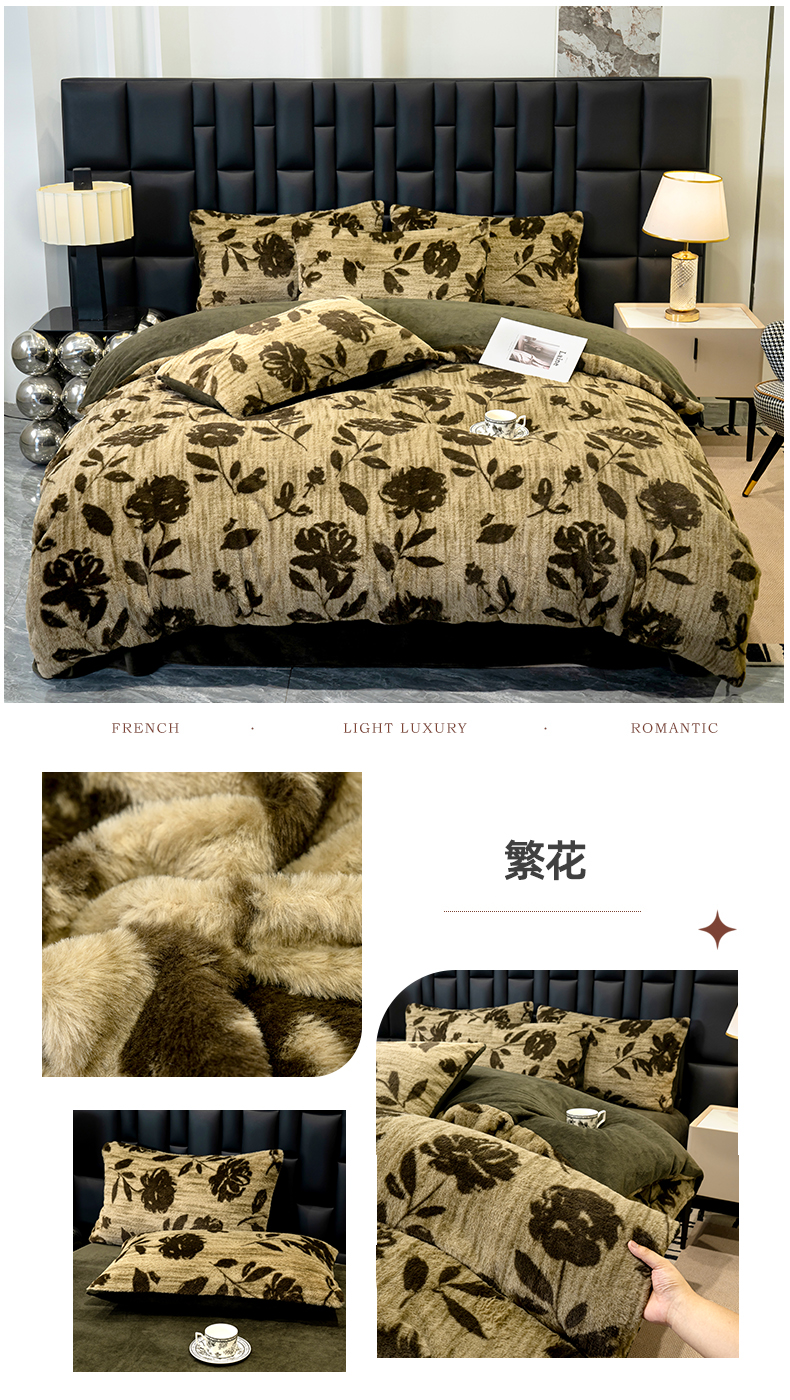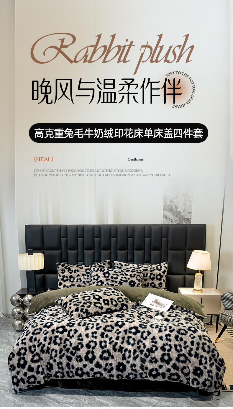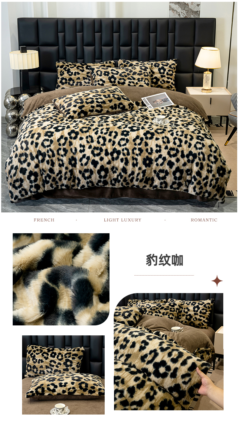 当前位置: 91家纺网 > 商品网购 > 床品套件 > 四件套 > 牛奶绒四件套 > 元禾家纺 2025新款法式美拉德高克重兔毛床盖款四件套兔毛简单款 豹纹灰