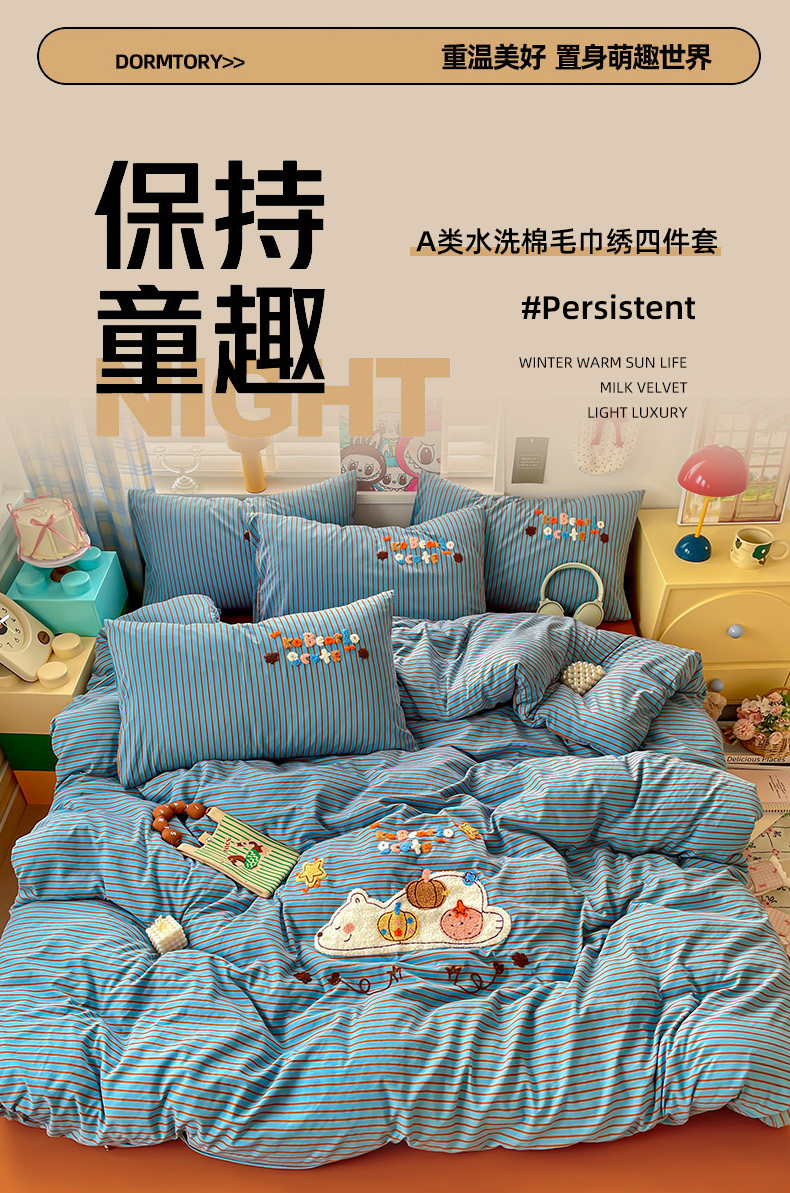 当前位置: 91家纺网 > 商品网购 > 床品套件 > 四件套 > 毛巾绣四件套 > 凯洛奇 2025新款趴趴熊毛巾绣四件套(提供买家秀) 趴趴熊-蓝条条