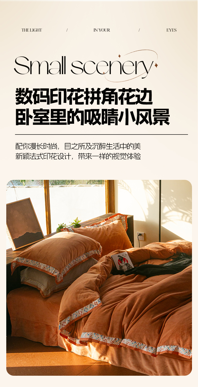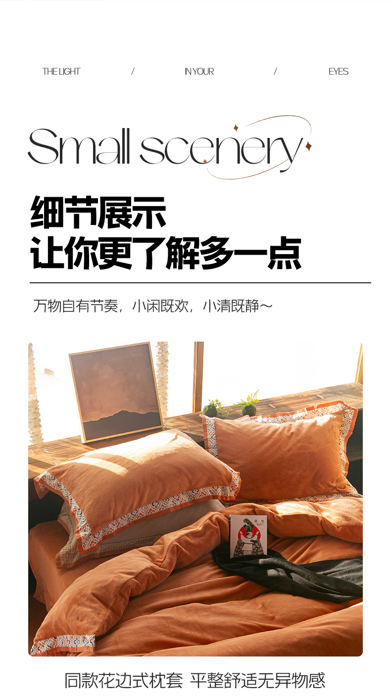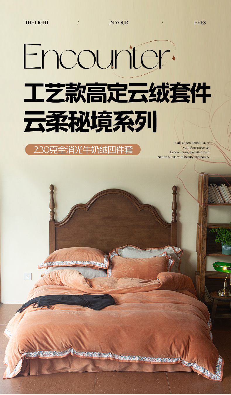 当前位置: 91家纺网 > 商品网购 > 床品套件 > 四件套 > 牛奶绒四件套 > 绒梦里 2025新款高克重全消光工艺款高定云绒牛奶绒四件套云柔秘境 云柔秘境-暖橙