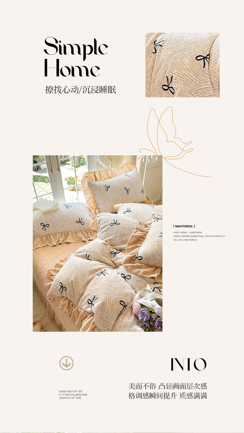 当前位置: 91家纺网 > 商品网购 > 床品套件 > 四件套 > 牛奶绒四件套 > 芷卧 2025新款高克重雕花牛奶绒夹棉床盖款四件套 璀璨情结