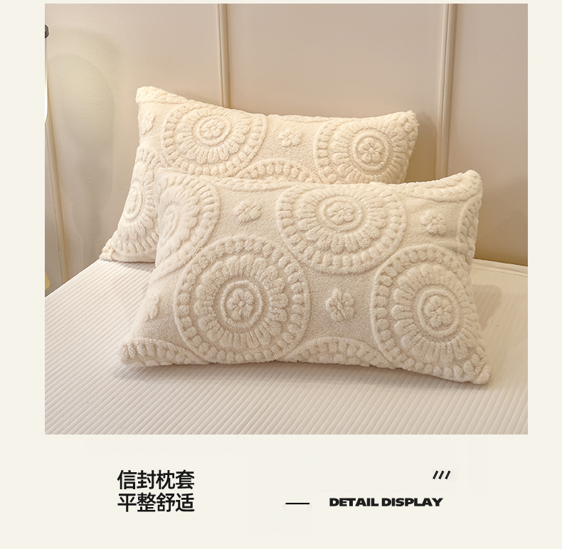 商品名称:莱家富 2026新款新款A类塔芙绒雕花双面毛毯毯子-花朵(可提供跨境压缩) 花朵-奶白