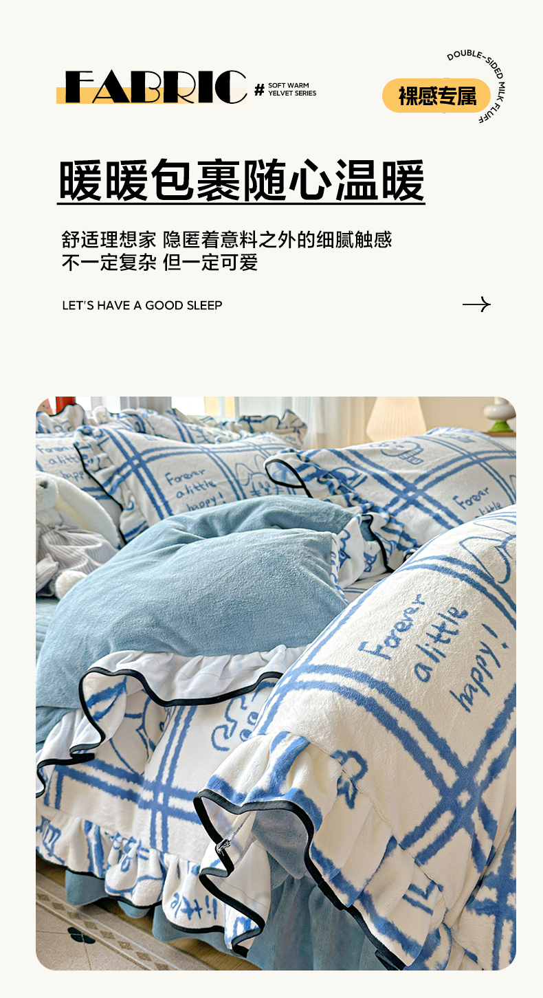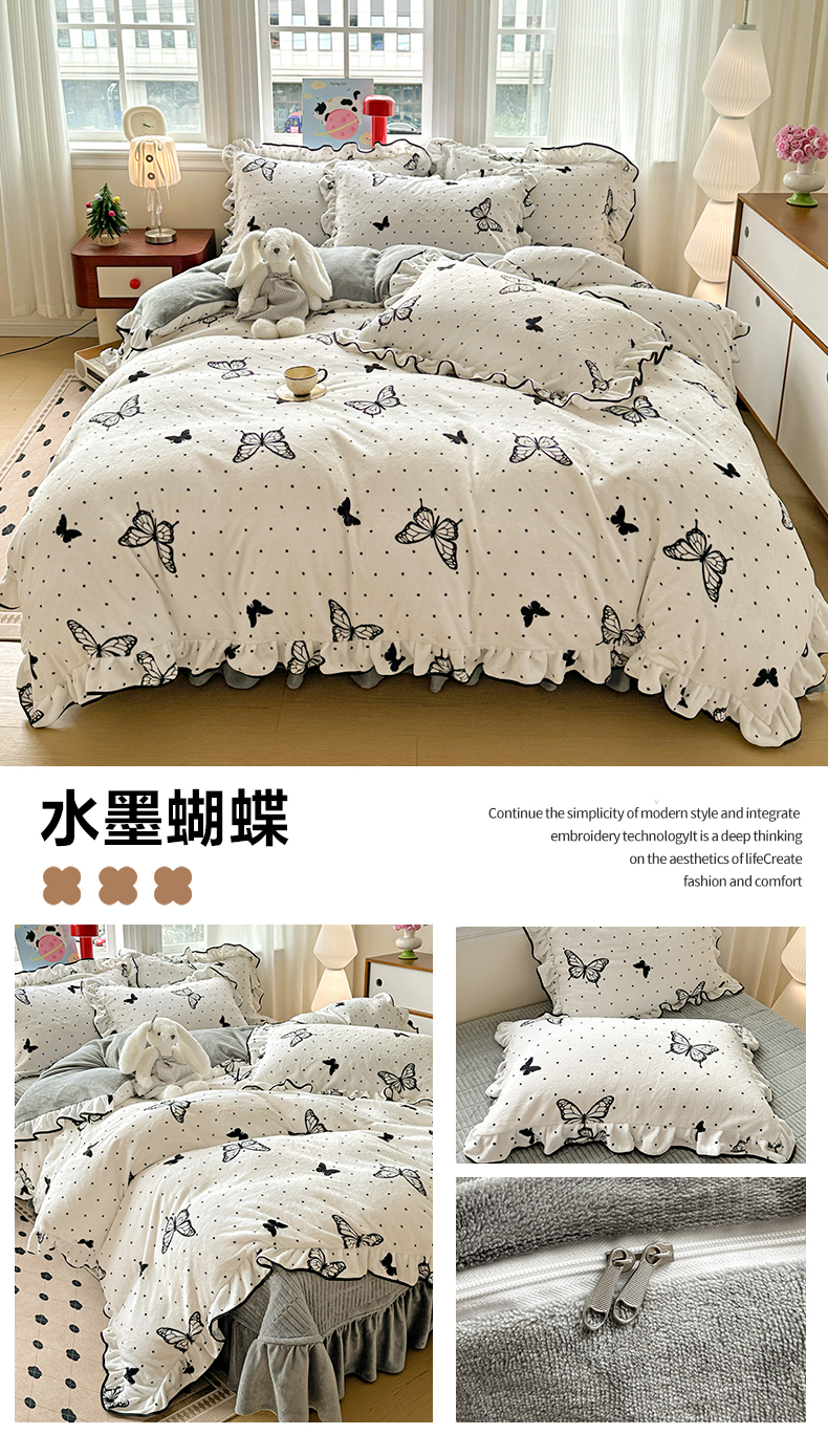当前位置: 91家纺网 > 商品网购 > 床品套件 > 四件套 > 牛奶绒四件套 > 简一 2025新款牛奶绒花边床盖四件套 派队乐园