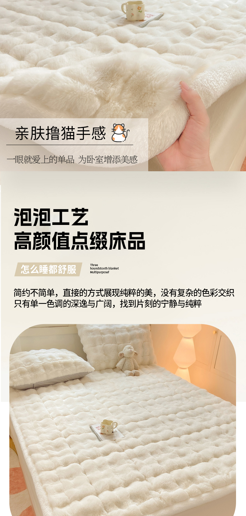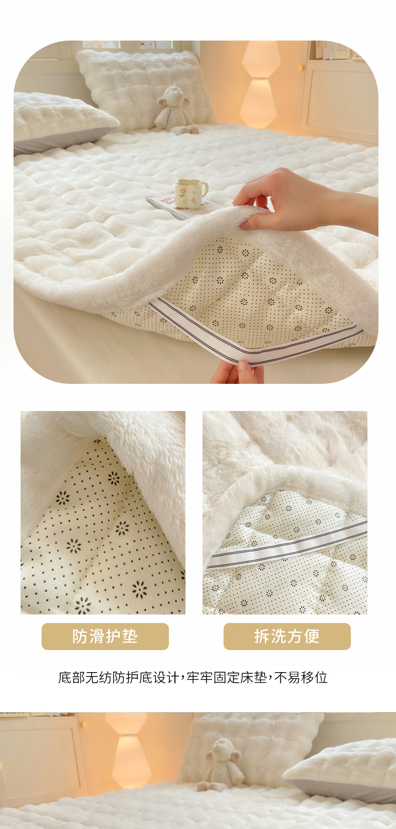 当前位置: 91家纺网 > 商品网购 > 床垫/床褥 > 普通床垫 > 麒东家纺 2025年新款兔毛绒泡泡绒夹棉床垫 米白