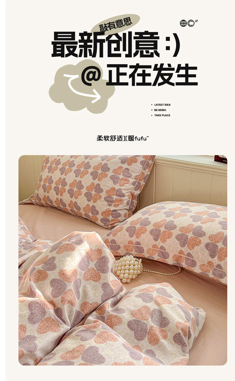 暖芯优选 2025新款小清新印花全棉磨毛四件套 四叶草