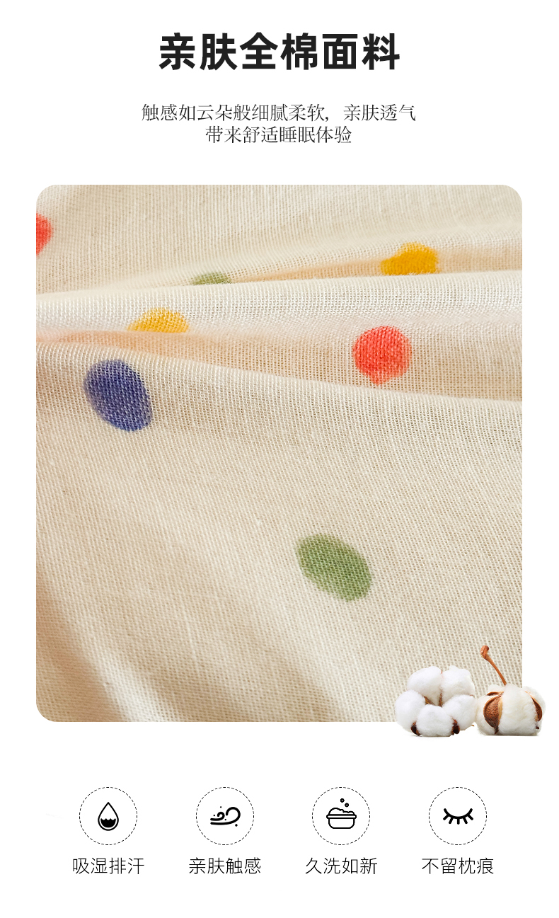 商品名称:贵夫人 2025新款卡通儿童100%纯棉花枕 枕头枕芯 彩虹糖豆儿童枕一只