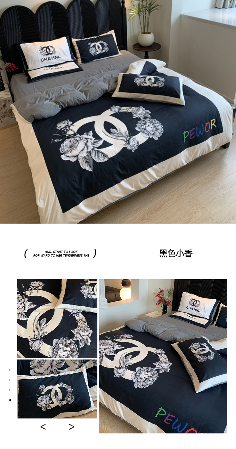 (总)花沐家居 2023新款活性数码印花牛奶绒四件套-场景1,白色字母熊,黑白金范,黑白熊,黑色花朵,渐变熊,条纹,小白熊,小粉熊,小古黑花,小黑熊,小香风字母,字母熊