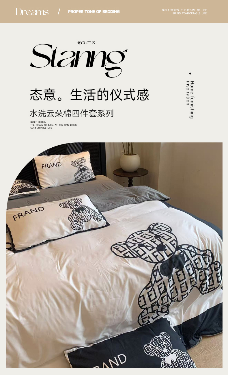 (总)花沐 2024新款云朵水洗棉四件套,【云朵棉】豹纹迪,【云朵棉】大酷熊,【云朵棉】芬芬熊,【云朵棉】粉古花,【云朵棉】黑色爱心,【云朵棉】红香,【云朵棉】咖熊,【云朵棉】蓝酷熊,【云朵棉】马车,【云朵棉】繆繆,【云朵棉】轻奢黑花,【云朵棉】条纹迪,【云朵棉】条纹女孩,【云朵棉】小白熊,【云朵棉】小绿熊