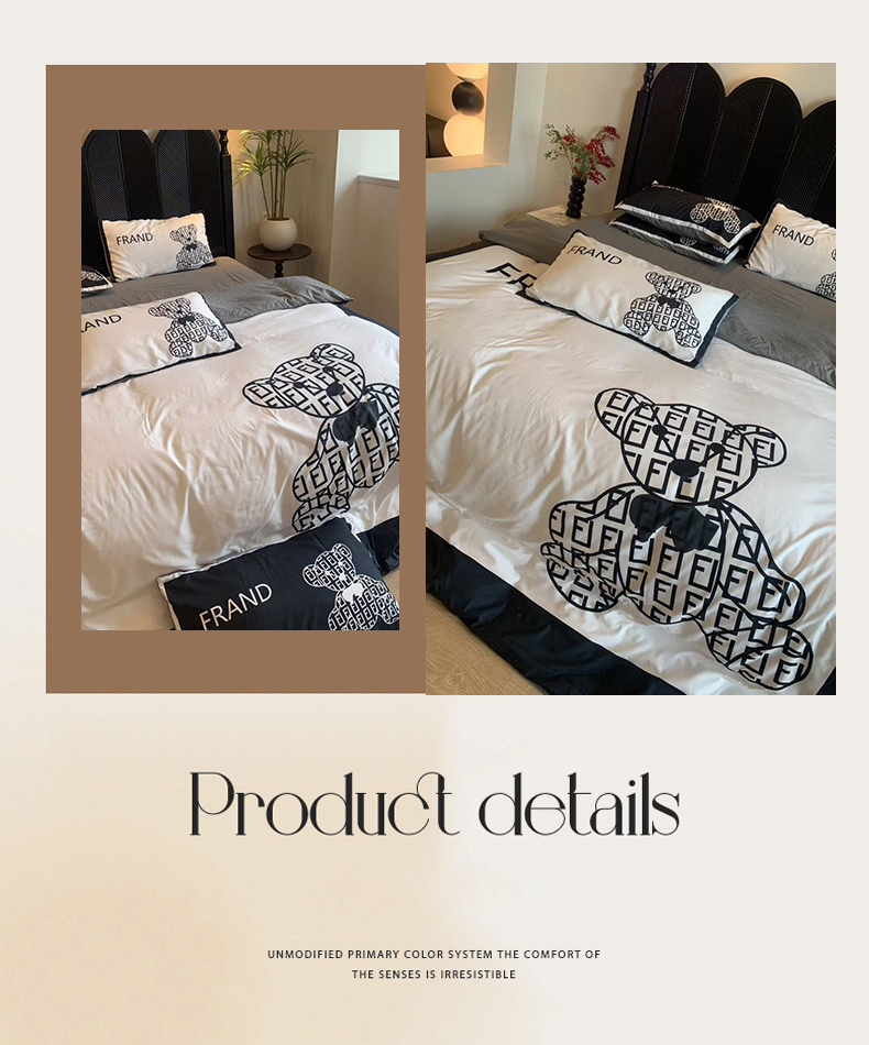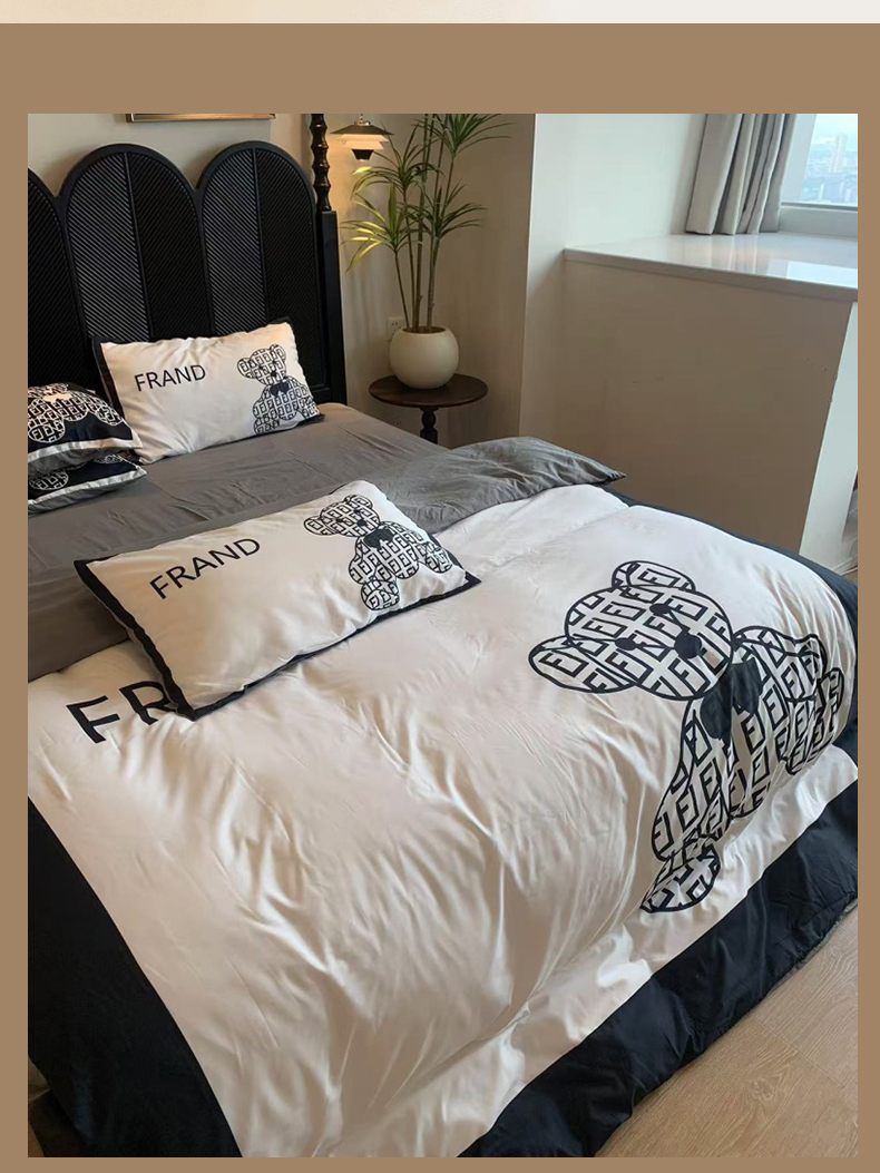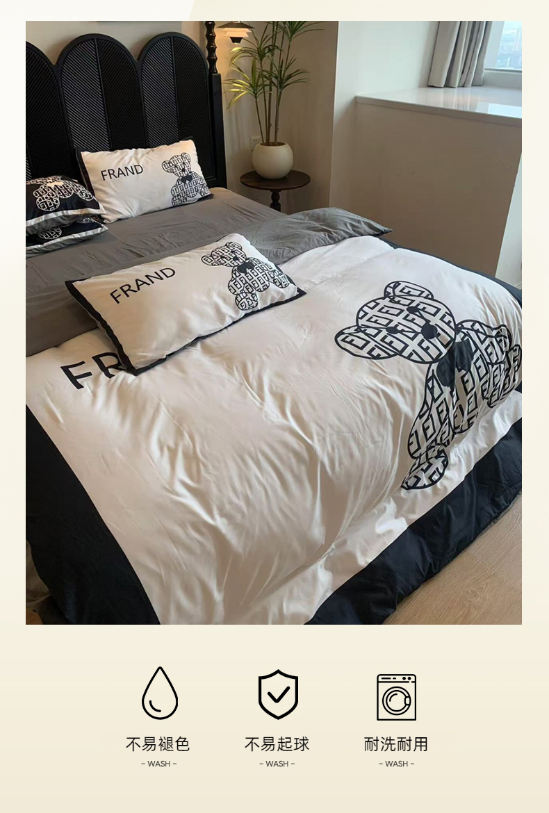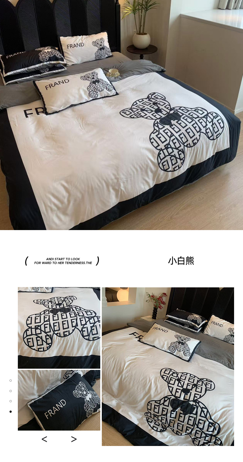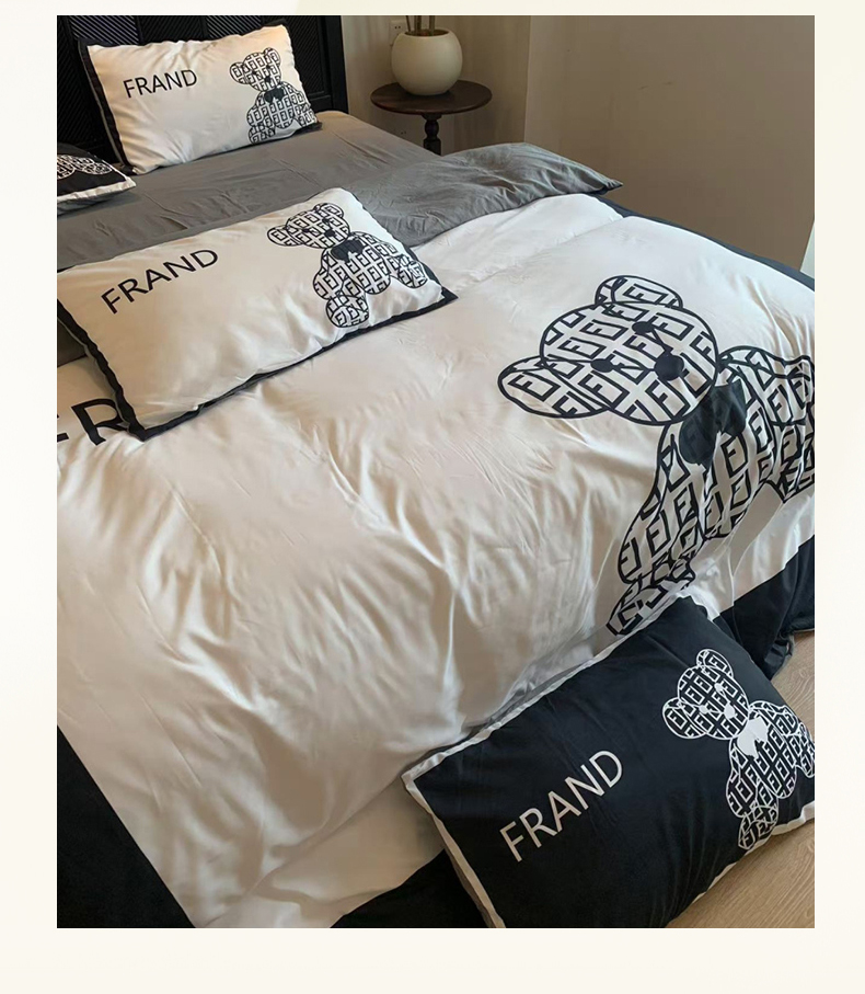(总)花沐家居 2023新款活性数码印花牛奶绒四件套-场景1,白色字母熊,黑白金范,黑白熊,黑色花朵,渐变熊,条纹,小白熊,小粉熊,小古黑花,小黑熊,小香风字母,字母熊