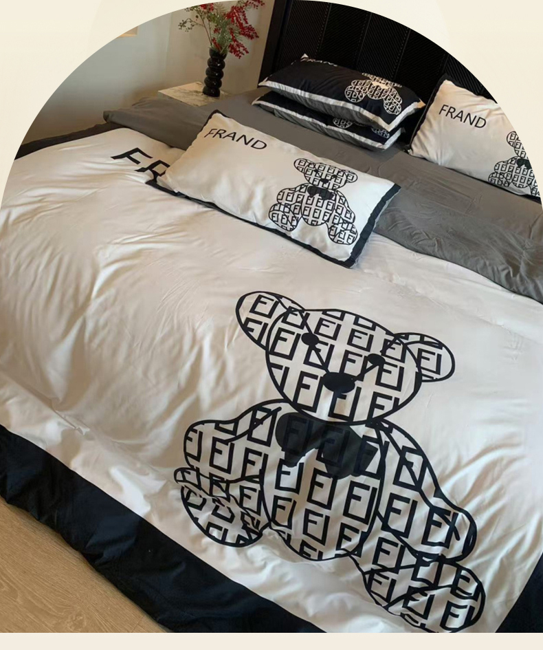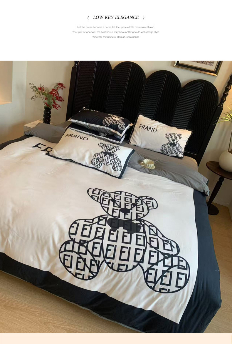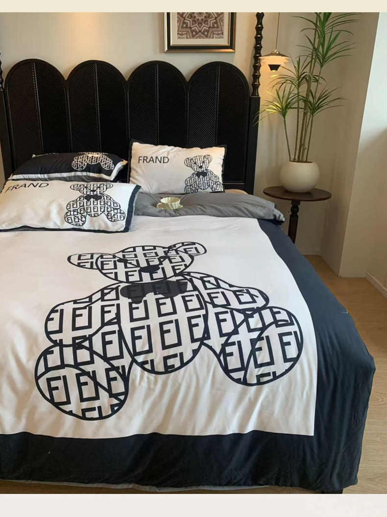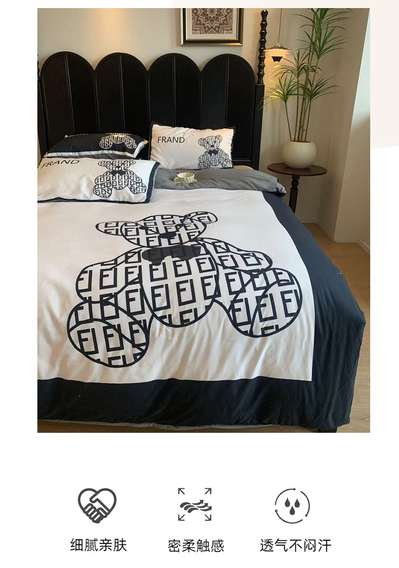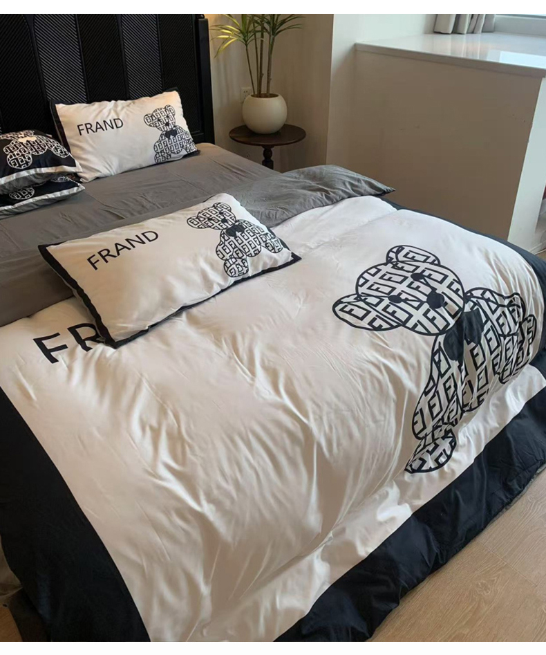 (总)花沐家居 2023新款活性数码印花牛奶绒四件套-场景1,白色字母熊,黑白金范,黑白熊,黑色花朵,渐变熊,条纹,小白熊,小粉熊,小古黑花,小黑熊,小香风字母,字母熊