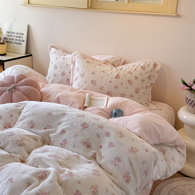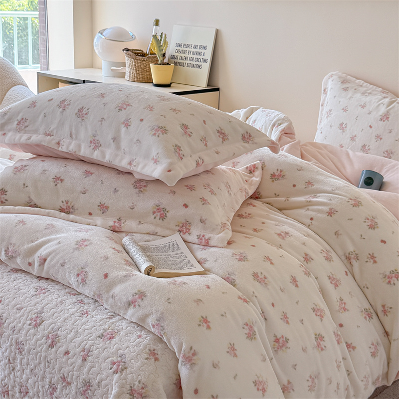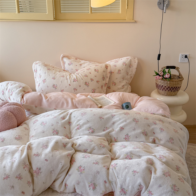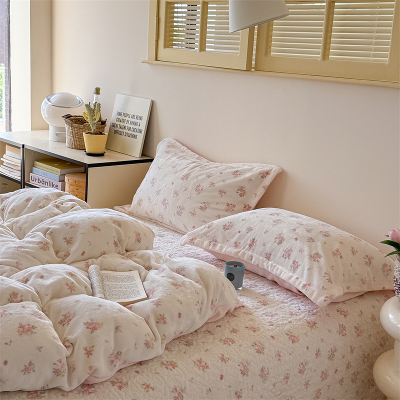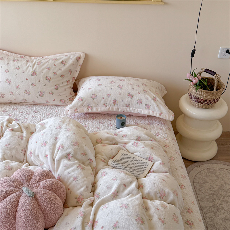 潘朵拉家纺 2025新款牛奶绒床盖款四件套 花仙子