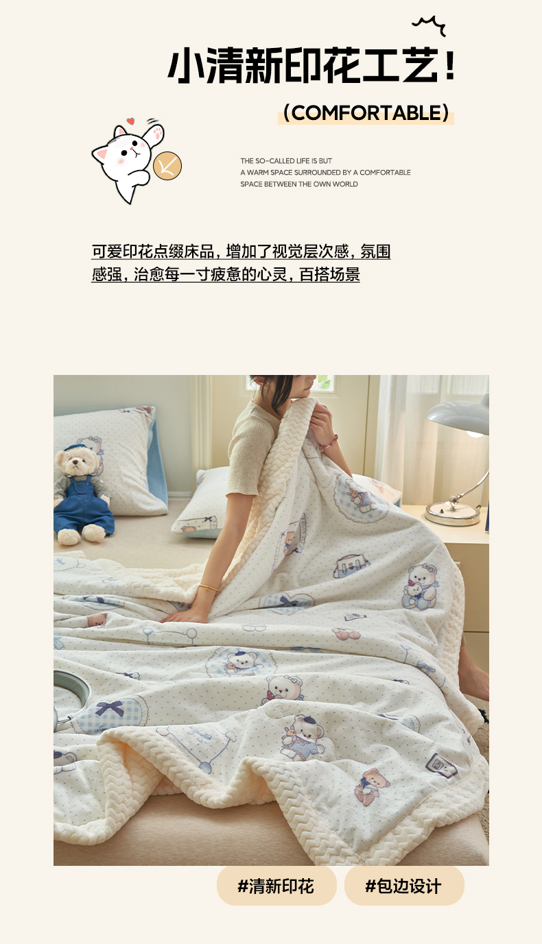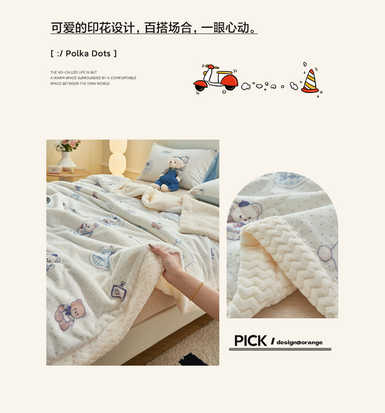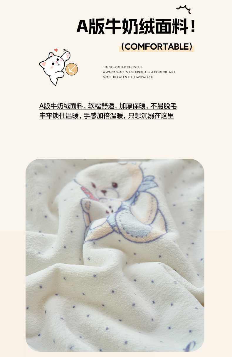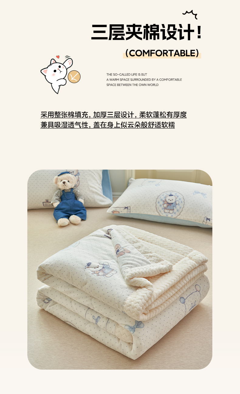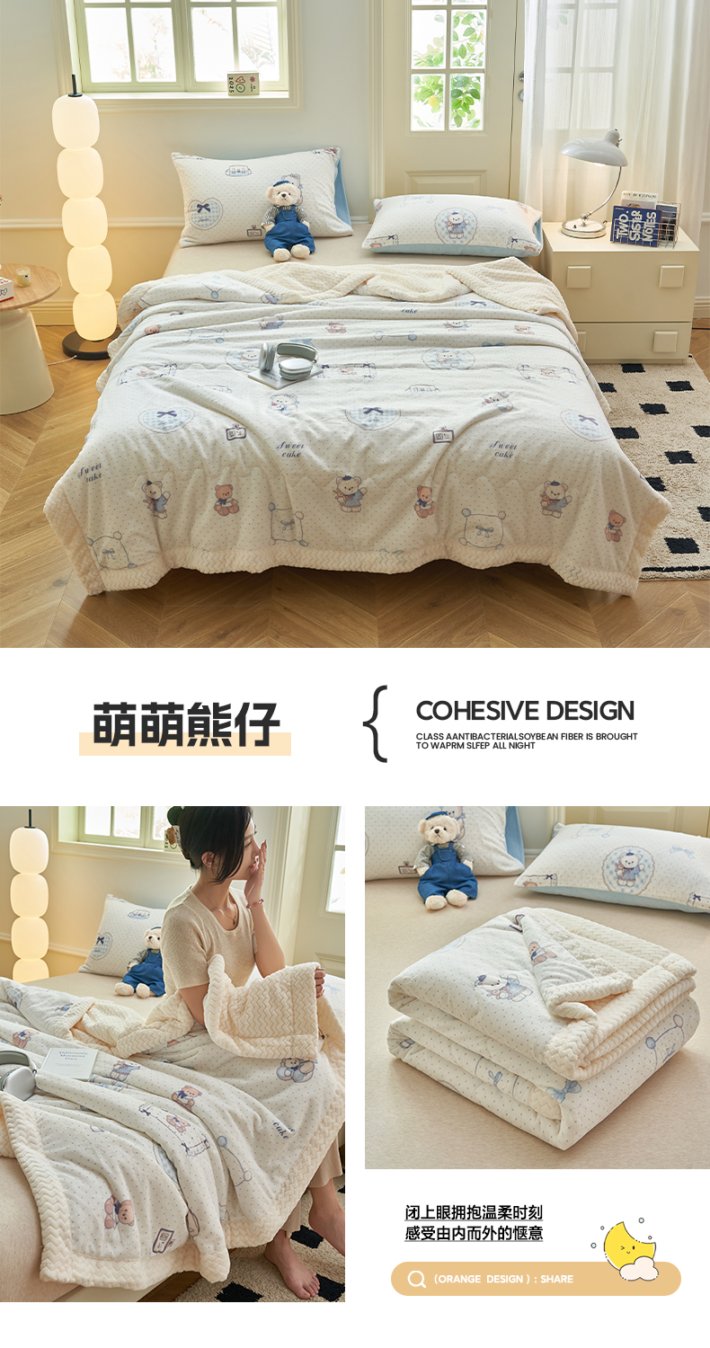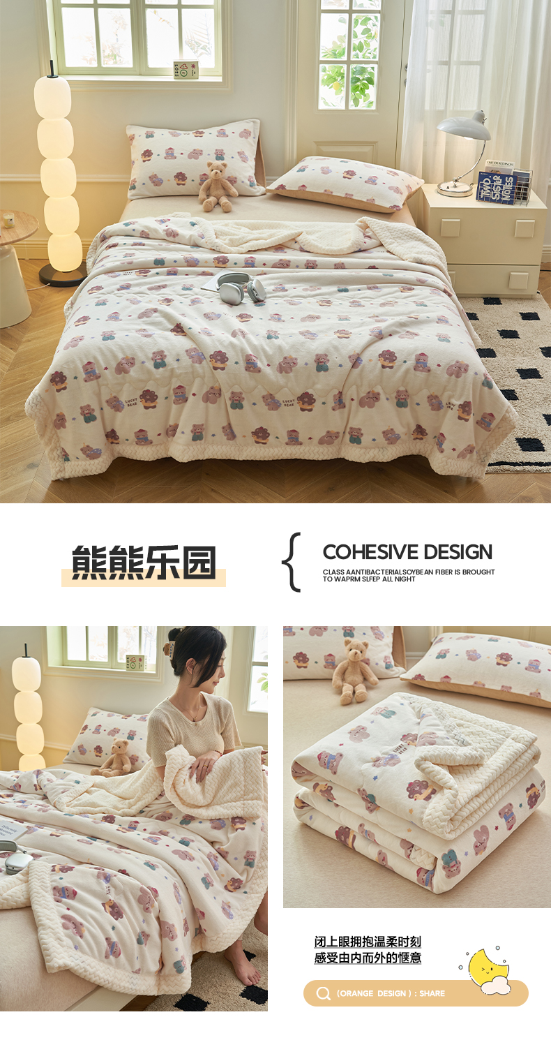 商品名称:晨曦家纺 2025新款加厚保暖牛奶绒贝贝绒三层夹棉毛毯可爱卡通 萌萌熊仔