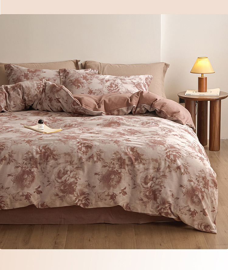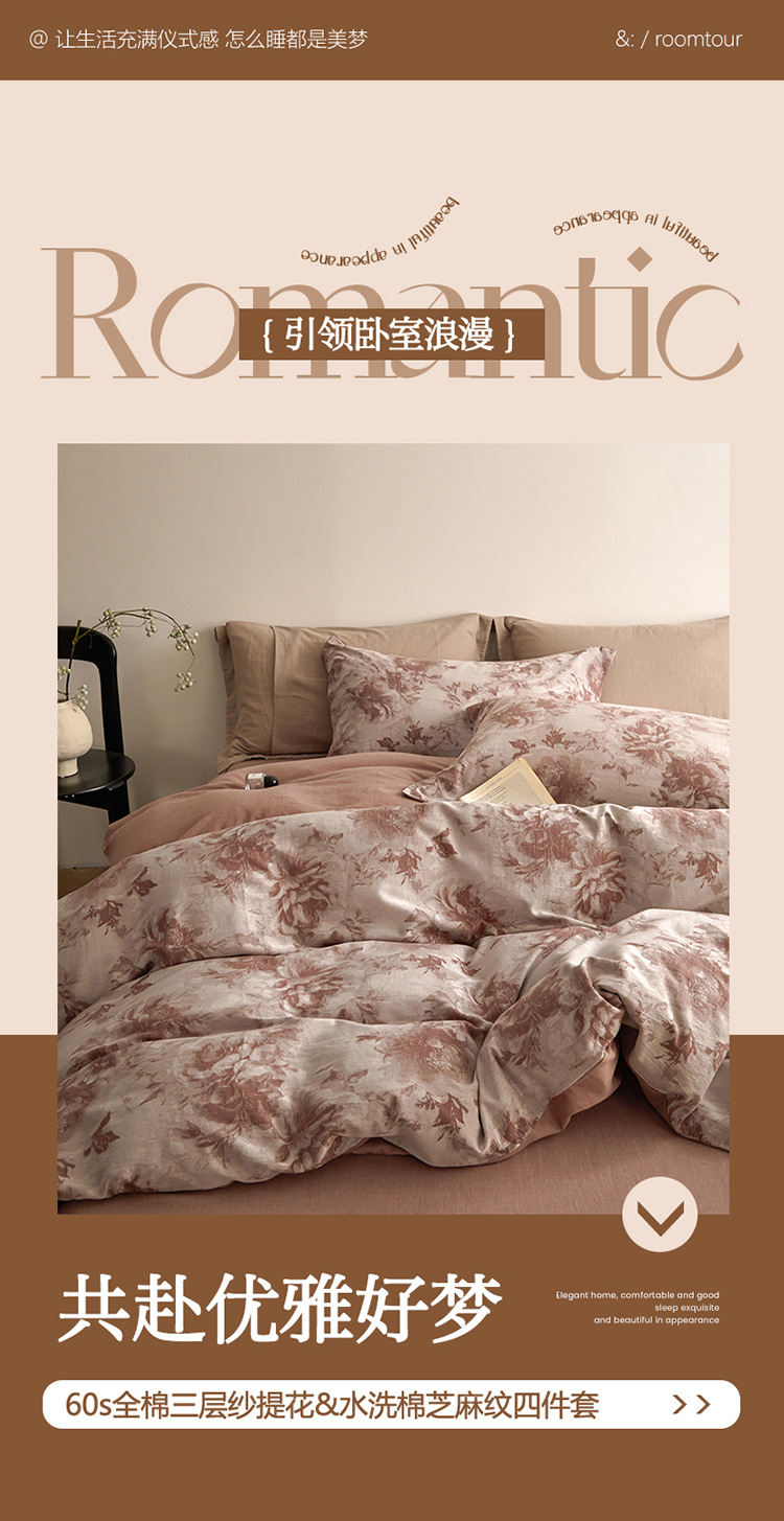 良品汇馆 2025【复古三层纱提花四件套】全棉柔软纱布民宿床品 曼陀罗-红棕