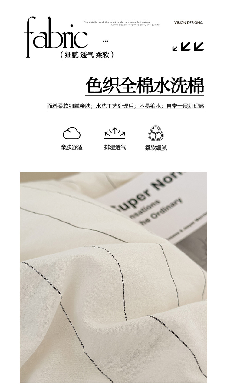 商品名称:良品汇馆 2025【水洗棉宽条纹白色四件套】宽条纹白色床品件套纯棉民宿学生 素岛-浅咖
