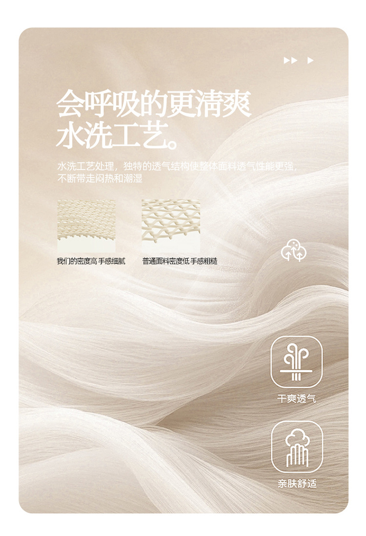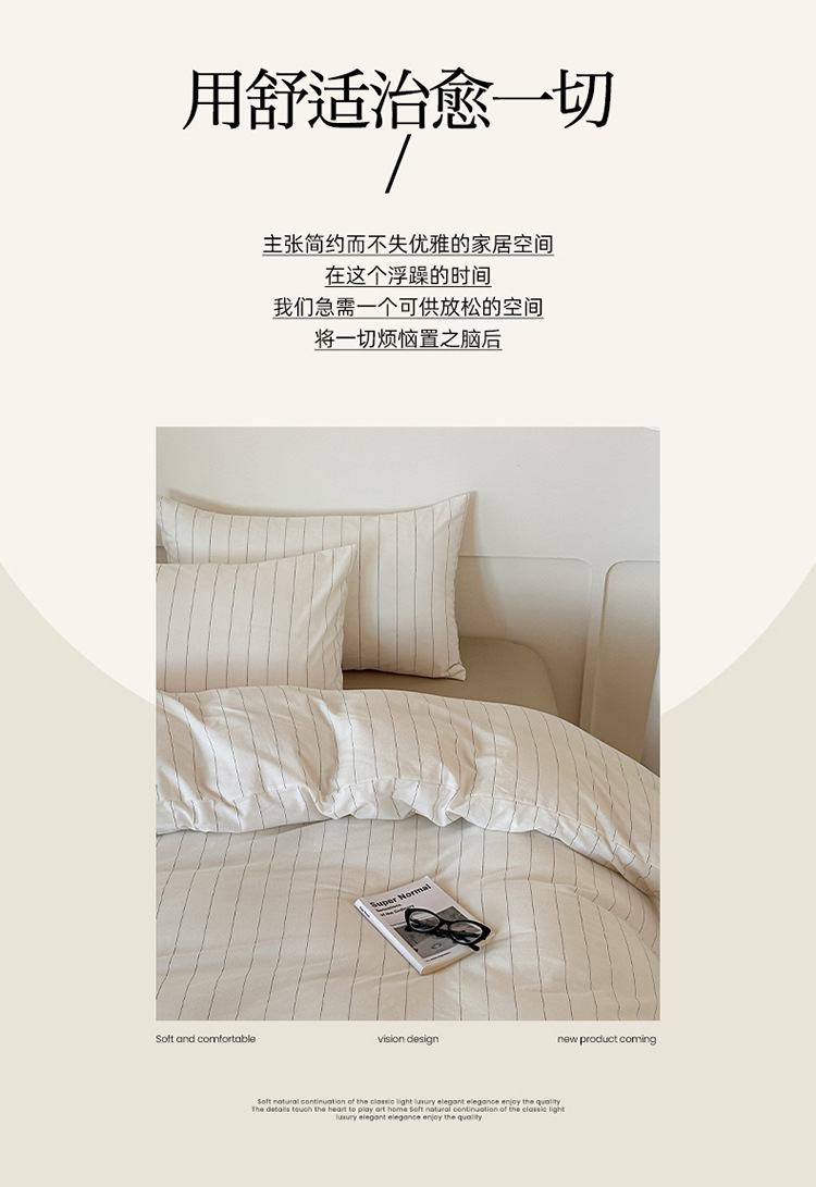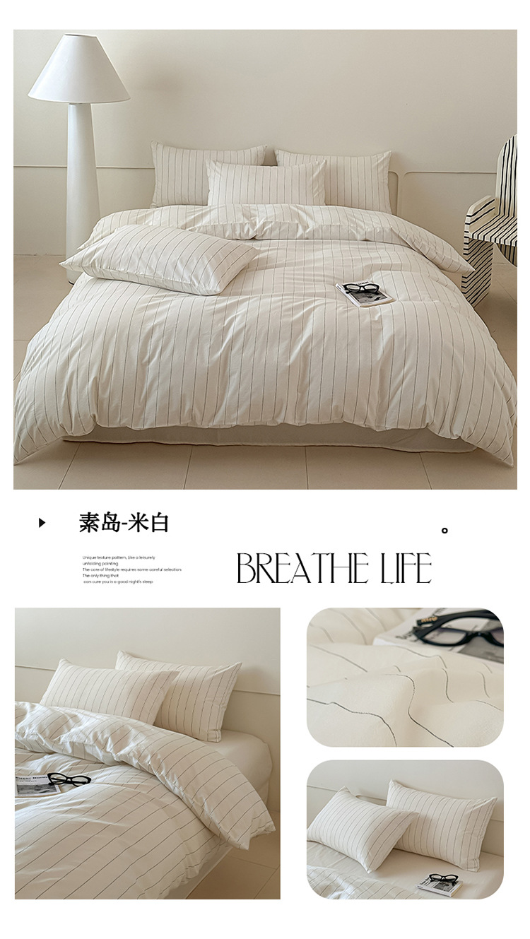 良品汇馆 2025【水洗棉宽条纹白色四件套】宽条纹白色床品件套纯棉民宿学生 素岛-浅咖