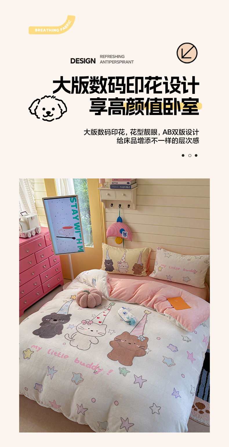 美乐迪家纺 2025新款大版牛奶绒四件套 波点猫舍