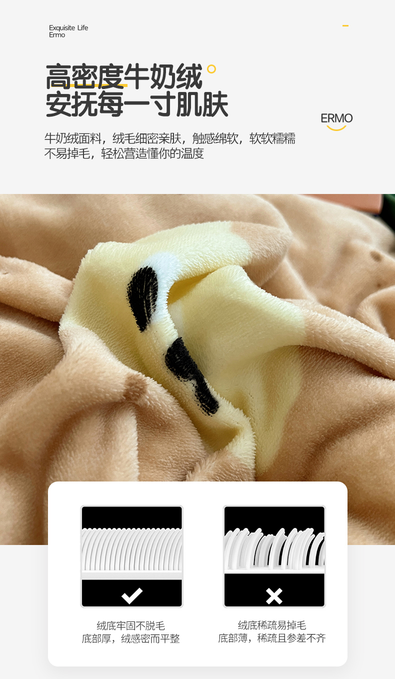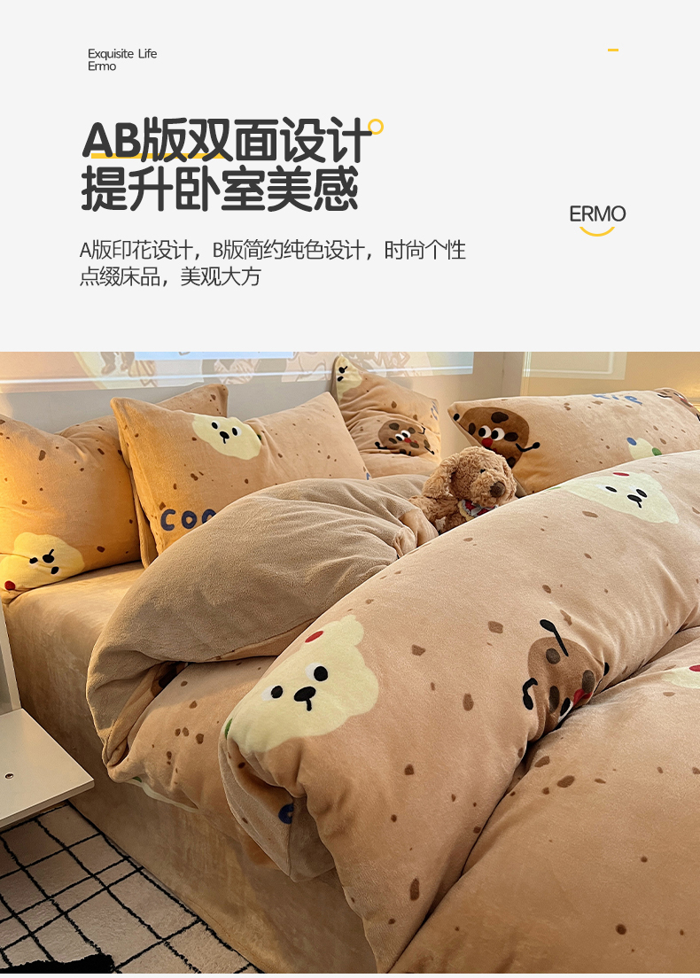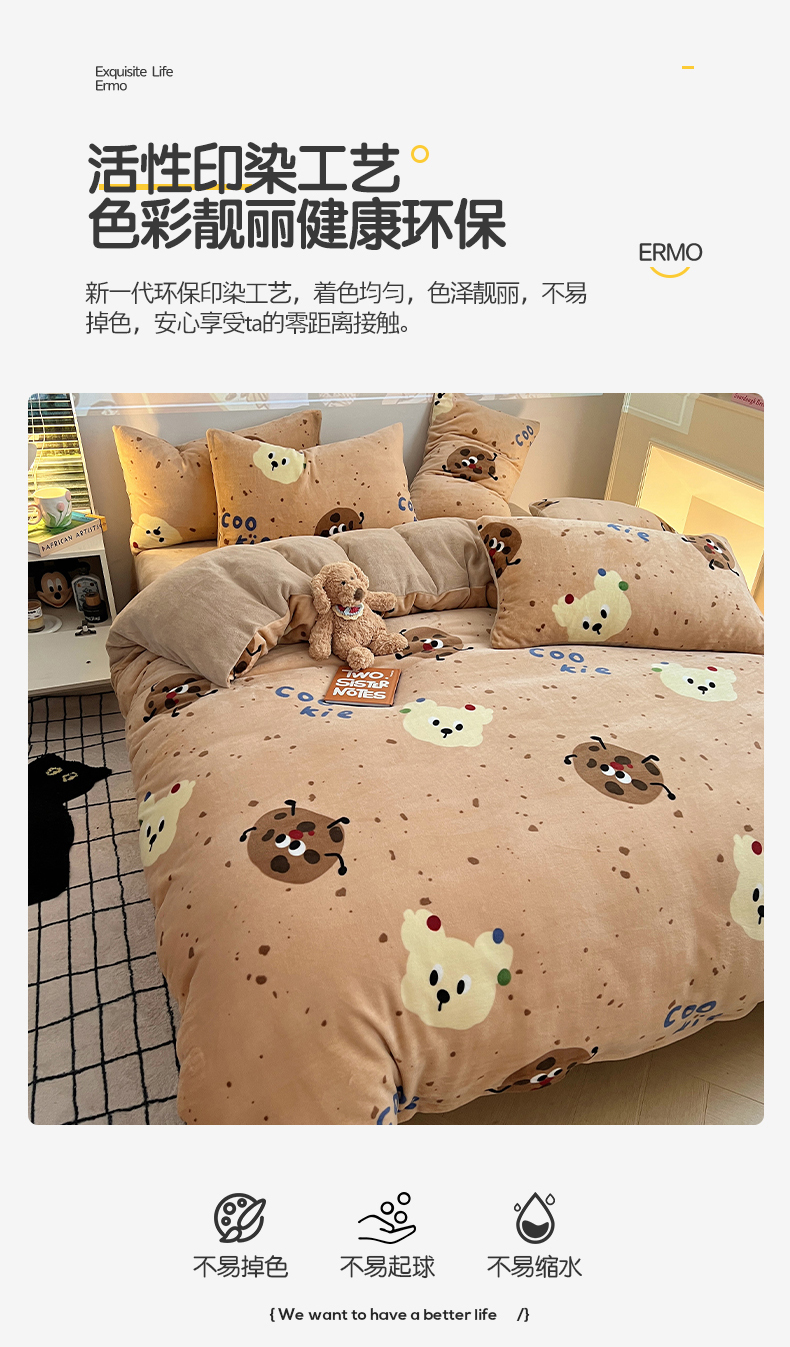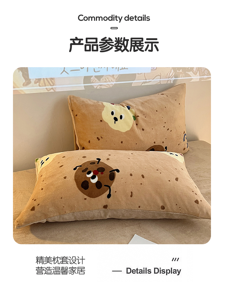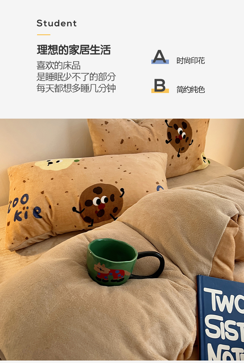 商品名称:瑞莱 2025新款A类200克高克重秋冬印花牛奶绒四件套-卡通系列 巧克力曲奇