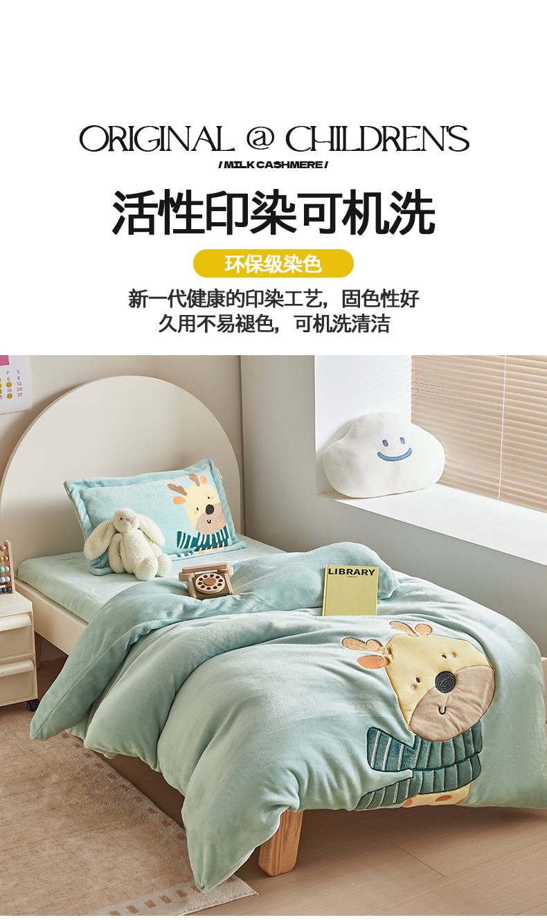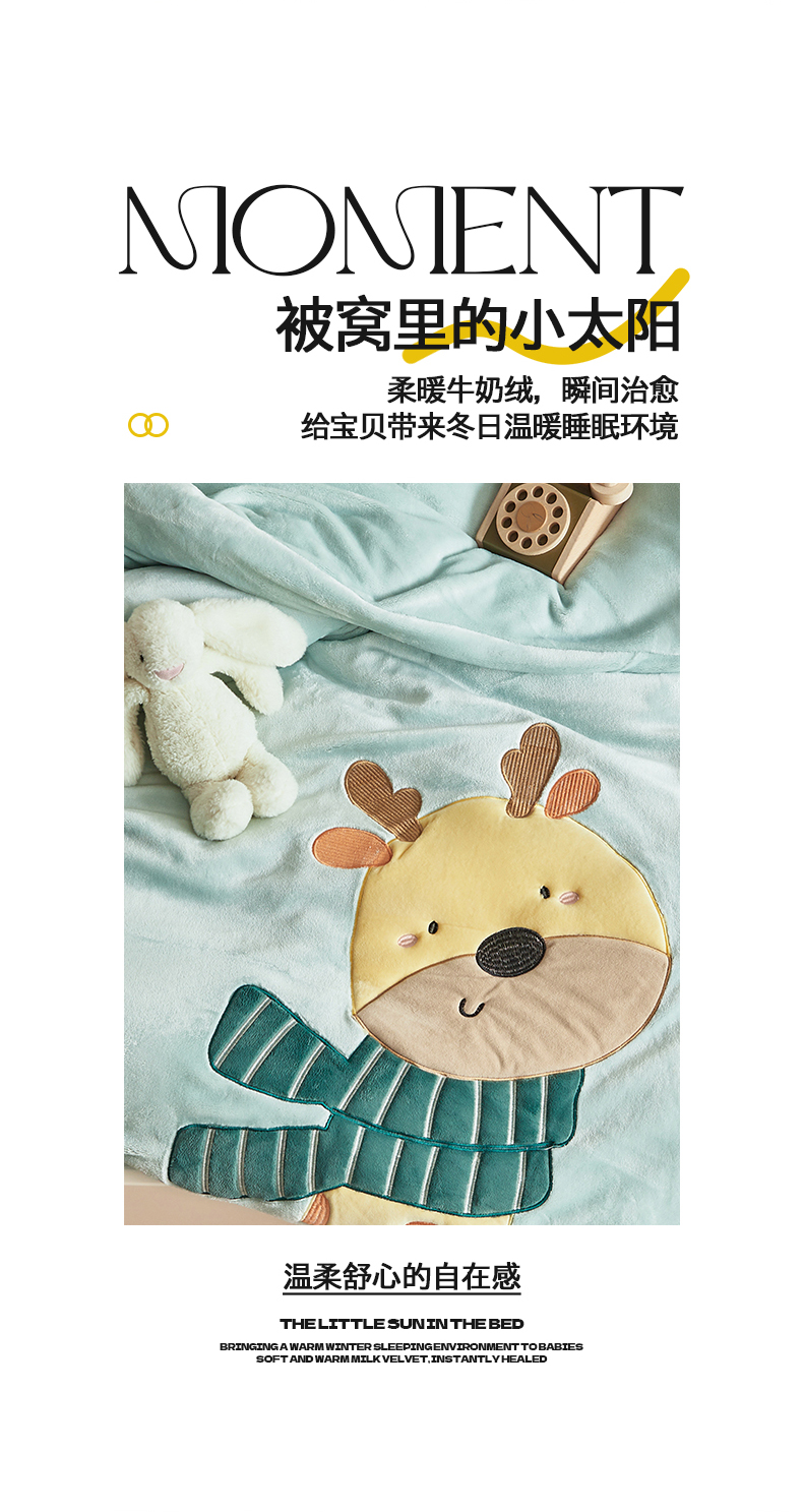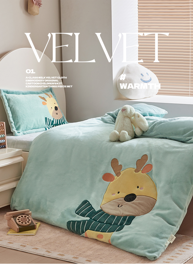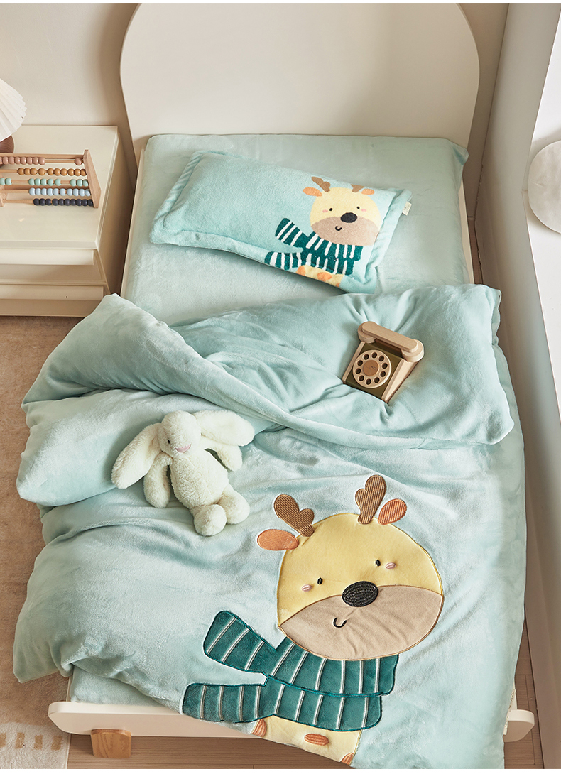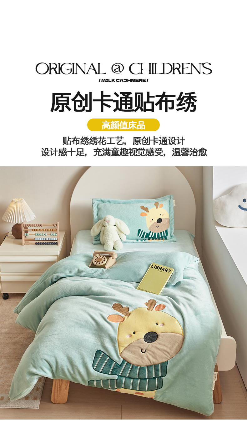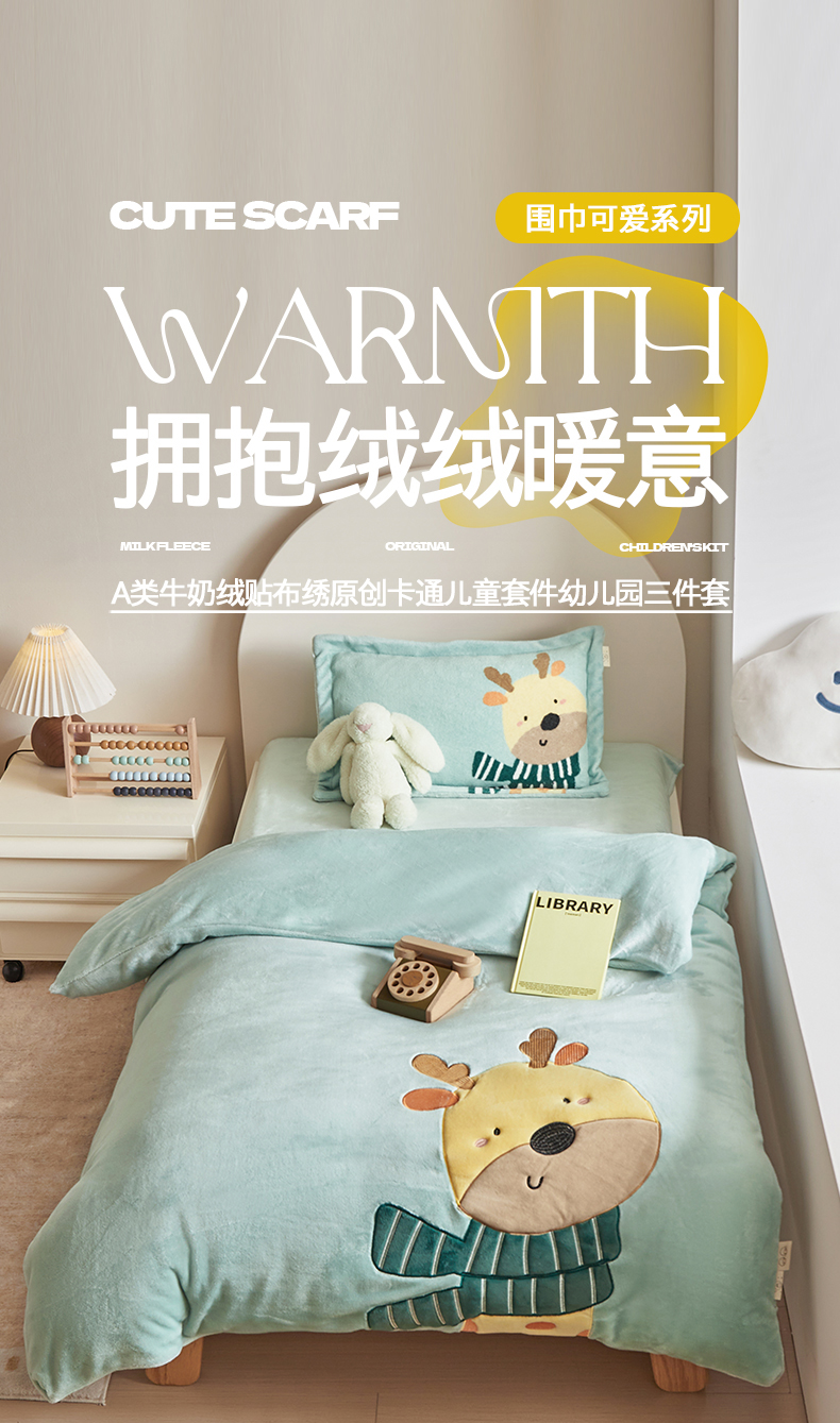 商品名称:荷马之梦 2025新款A类牛奶绒贴布绣原创卡通儿童套件幼儿园三件套-围住可爱系列 围巾小鹿