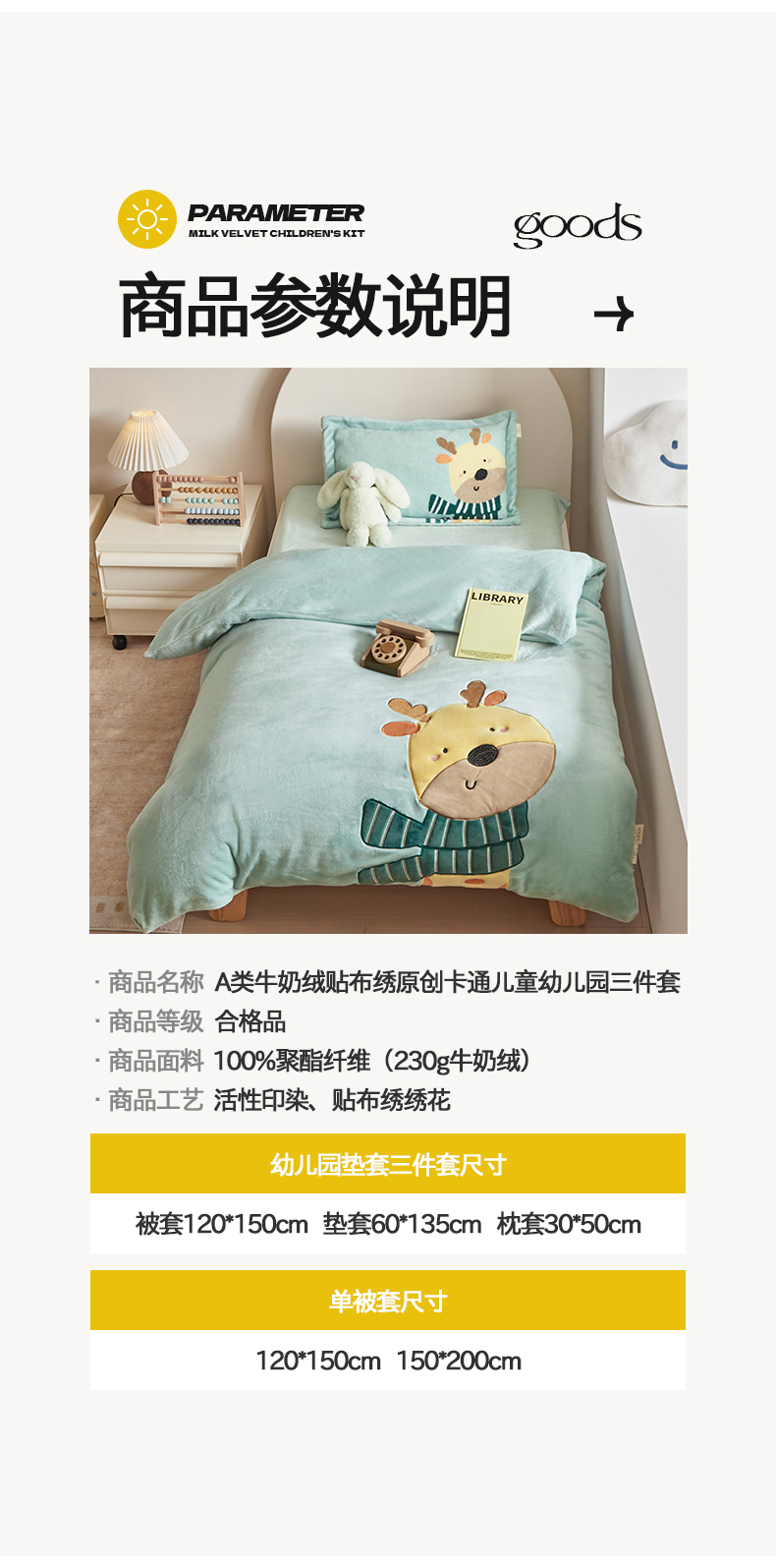 幼儿园垫套三件套(120x150cm被套+60x135cm垫套+30x50cm枕套)