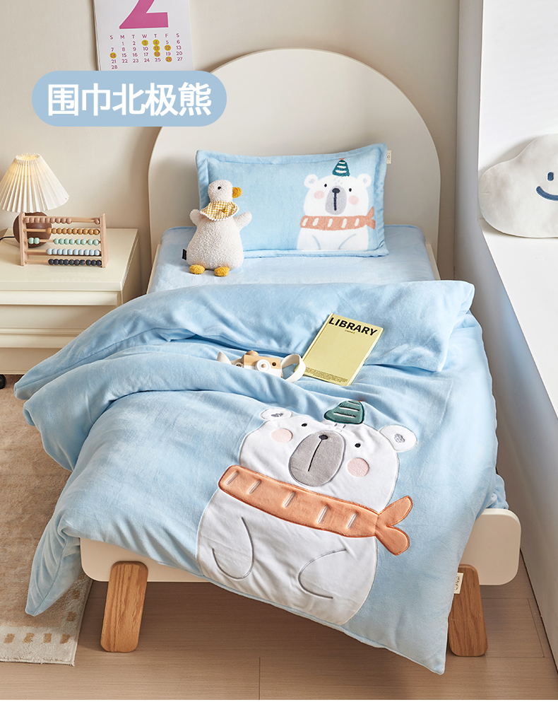 (总)荷马之梦 2025新款纯棉双层纱贴布绣卡通儿童被芯春秋被冬被被子被芯-围住可爱系列,围巾北极熊,围巾小鹿,围巾小兔,围巾小熊,围巾小鸭
