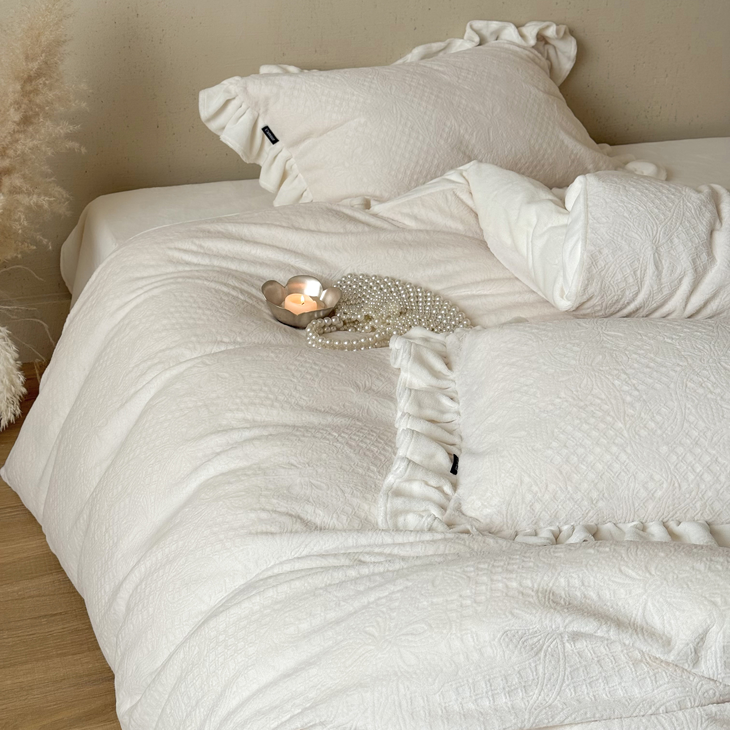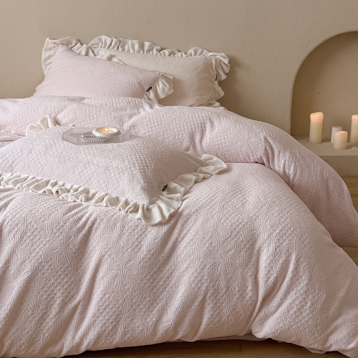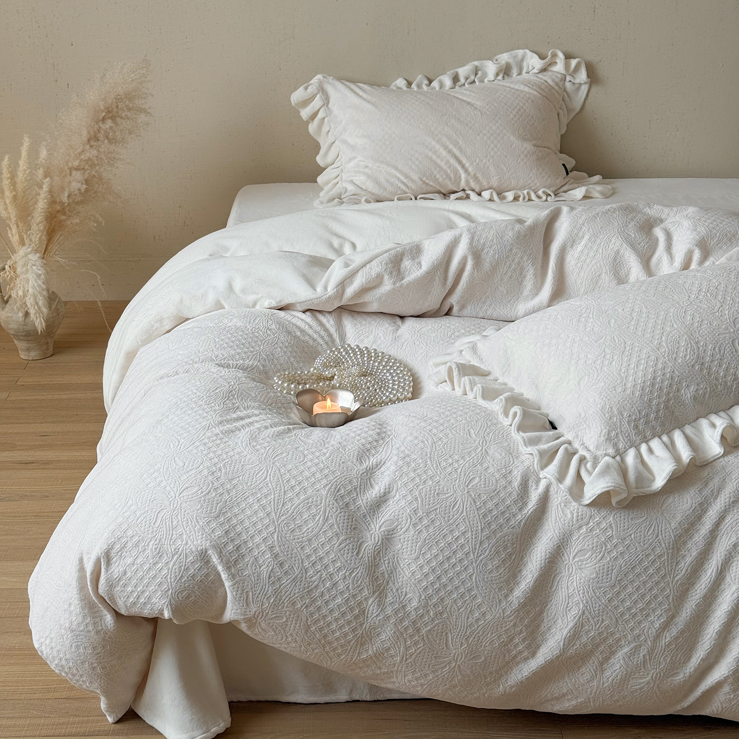 当前位置: 91家纺网 > 商品网购 > 床品套件 > 四件套 > 牛奶绒四件套 > 鹿班家居 2025新款冬季高克重牛奶绒立体雕花系列四件套-桃桃奶罐 白色