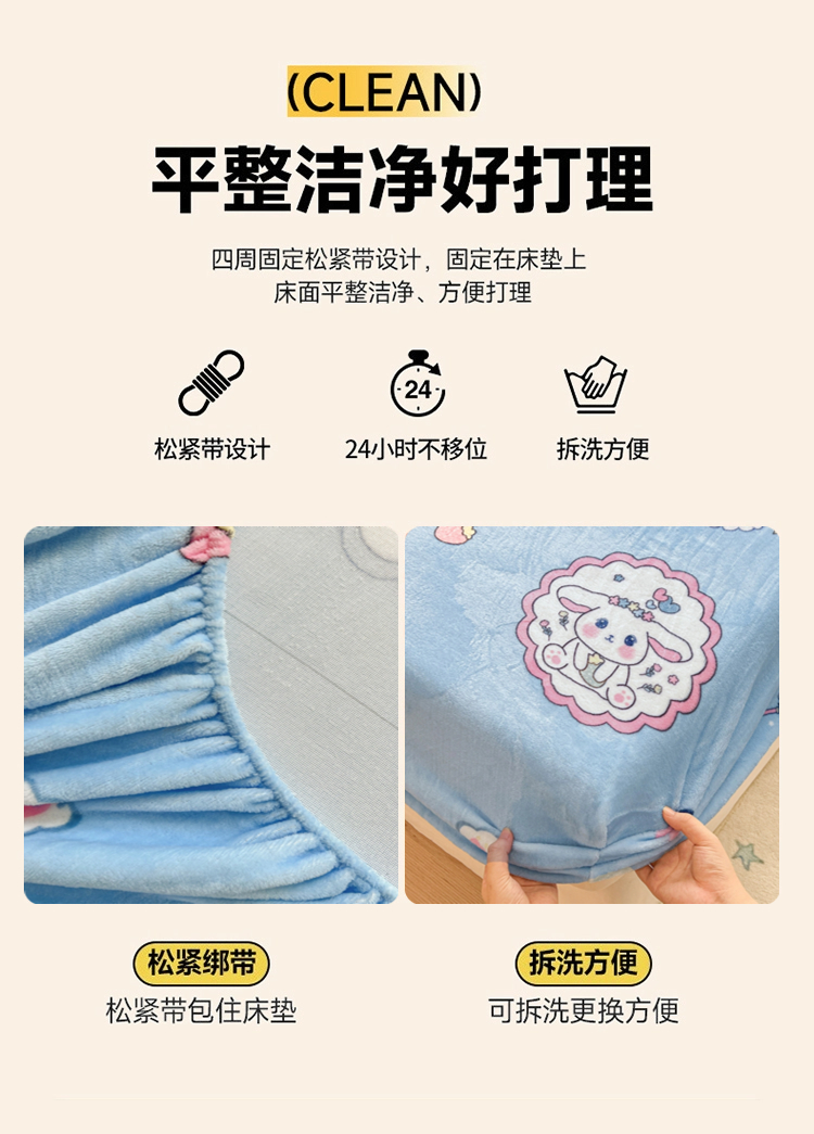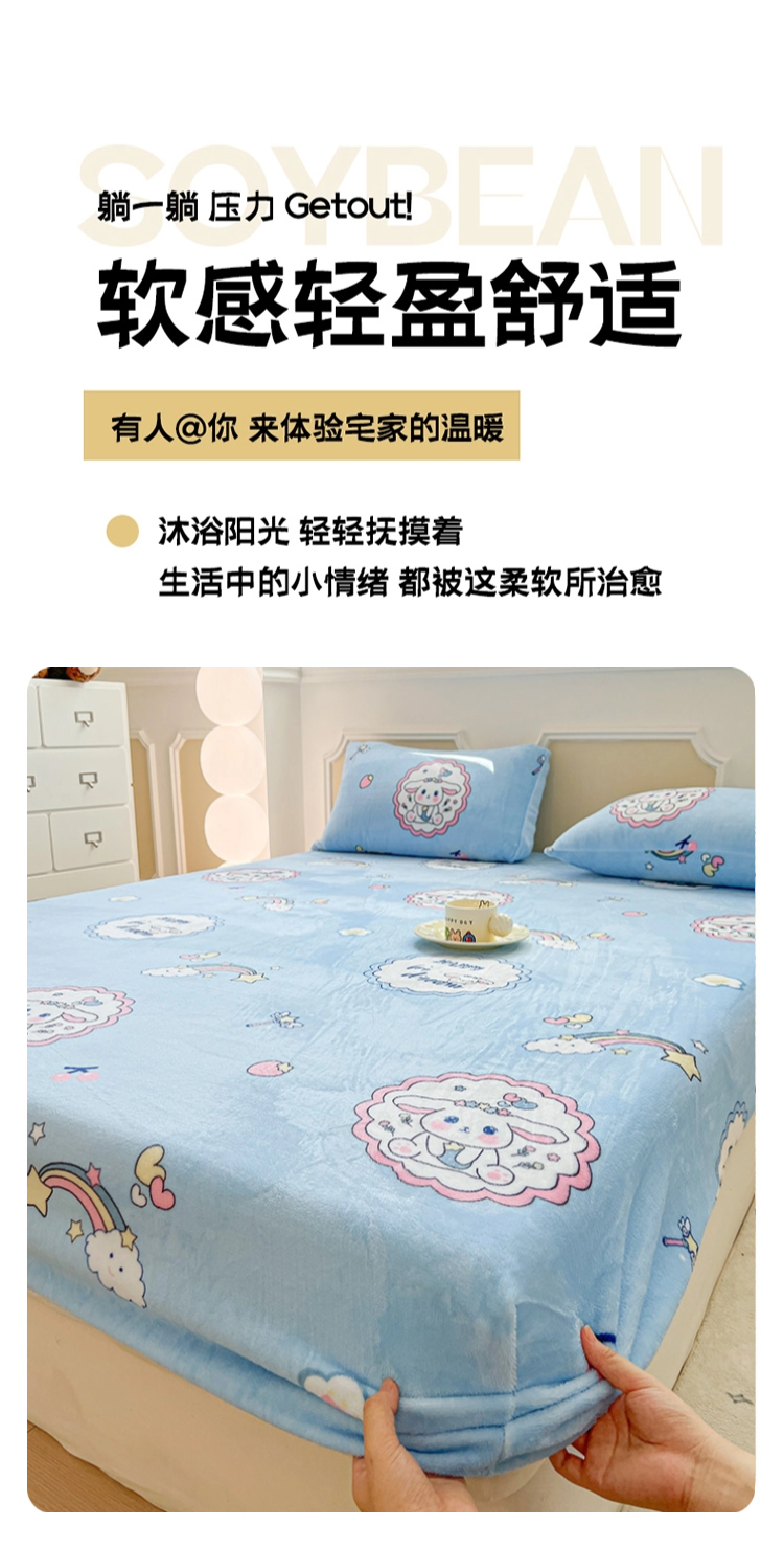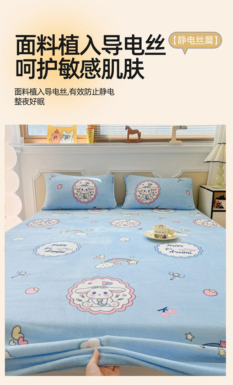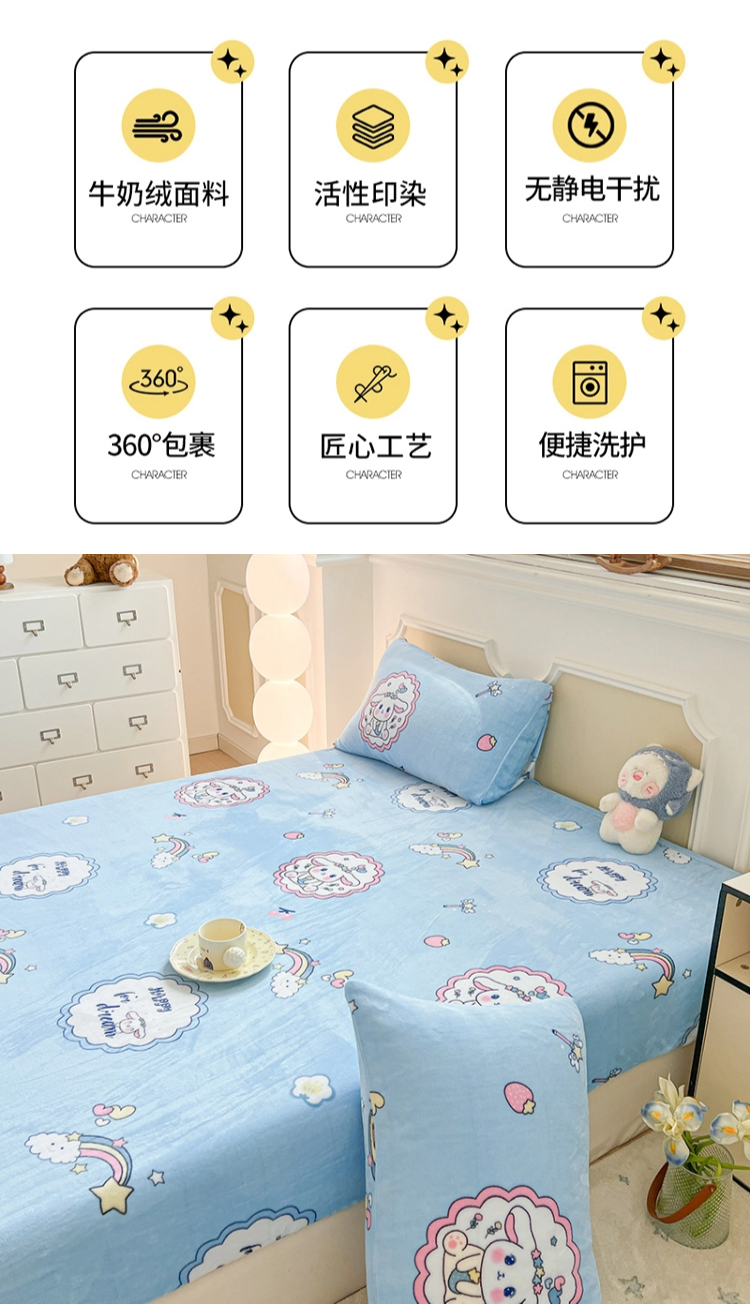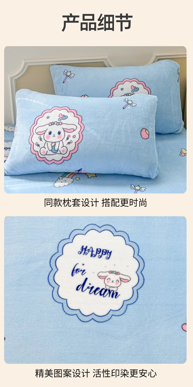 商品名称:维娜斯家纺 2025新款卡通牛奶绒印花床笠单件 萌萌哈奇