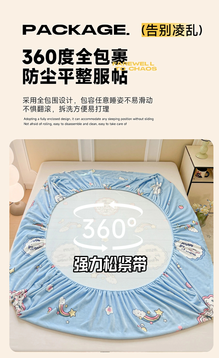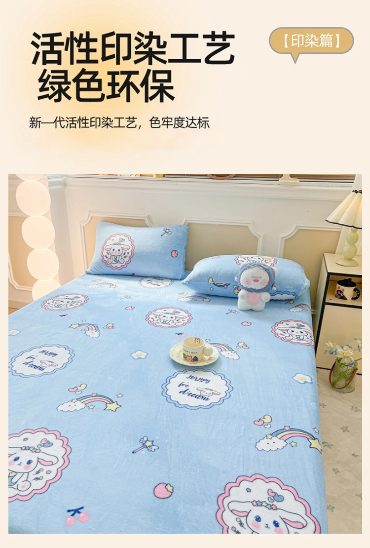维娜斯家纺 2025新款卡通牛奶绒印花床笠单件 萌萌哈奇