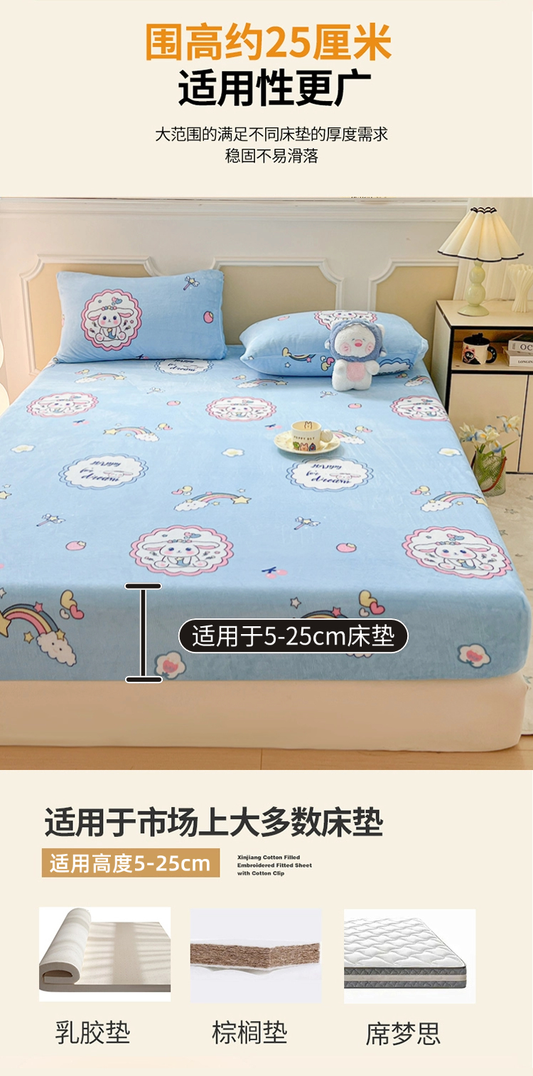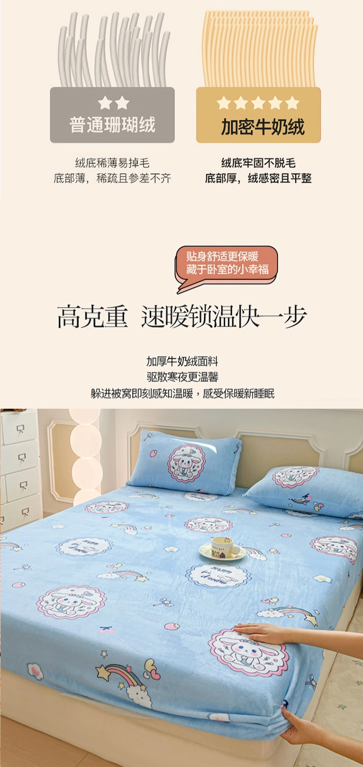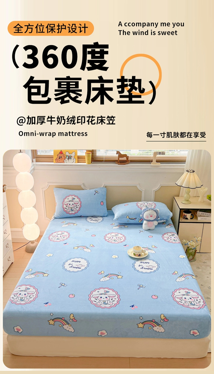 (总)维娜斯家纺 2025新款卡通牛奶绒印花床笠单件,草莓酱,花语岚山,欢度节日,欢乐猫咪,可爱猫咪,魅力小熊,萌萌哈奇,青柠薄荷,仙草,小熊梦梦