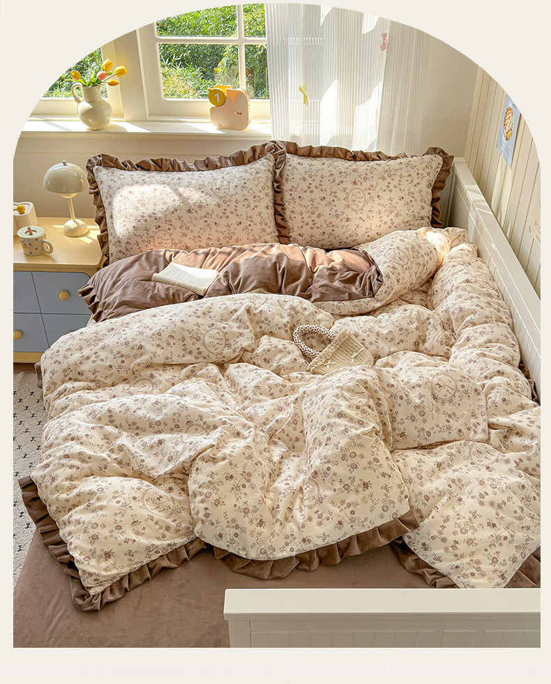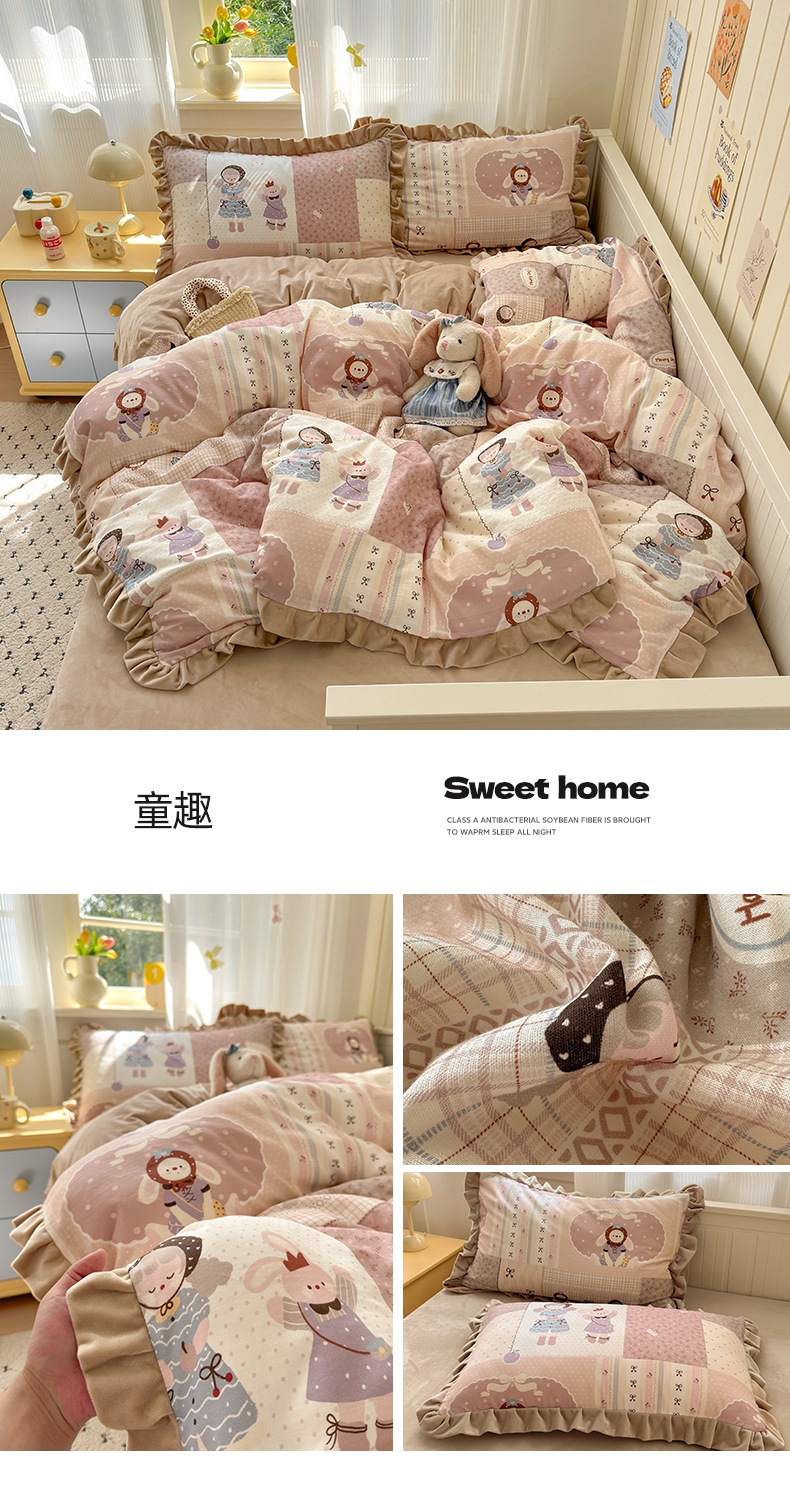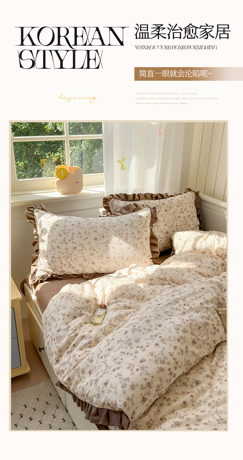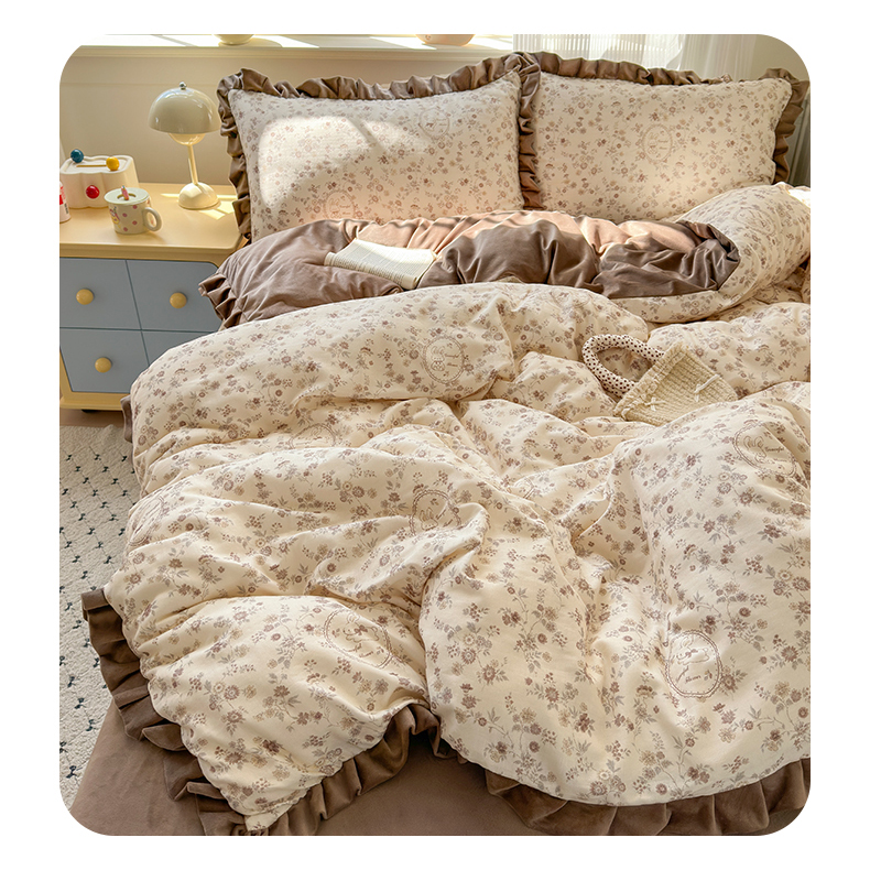 当前位置: 91家纺网 > 商品网购 > 床品套件 > 四件套 > 全棉普通四件套 > 淑女公社家纺 2025秋冬新款纯棉双层纱加韩国绒四件套 花园秘兔 咖