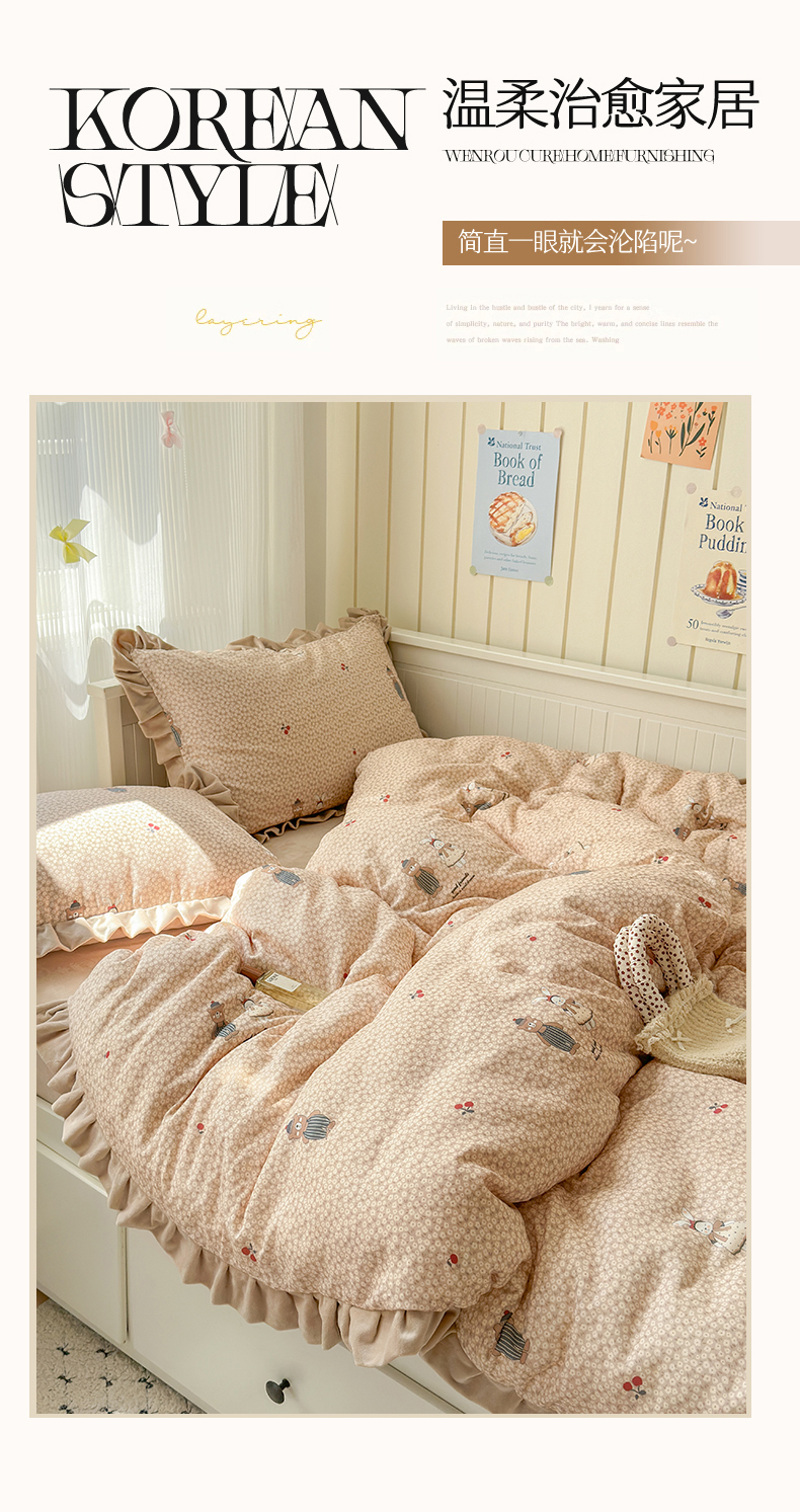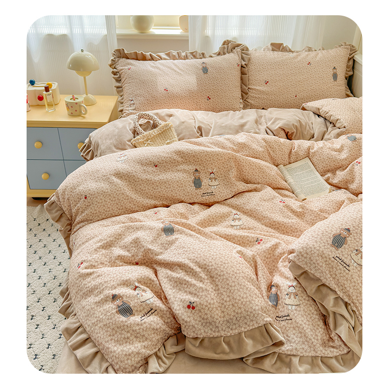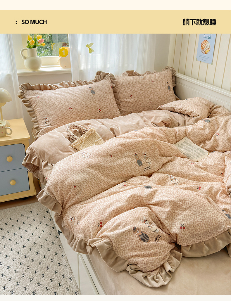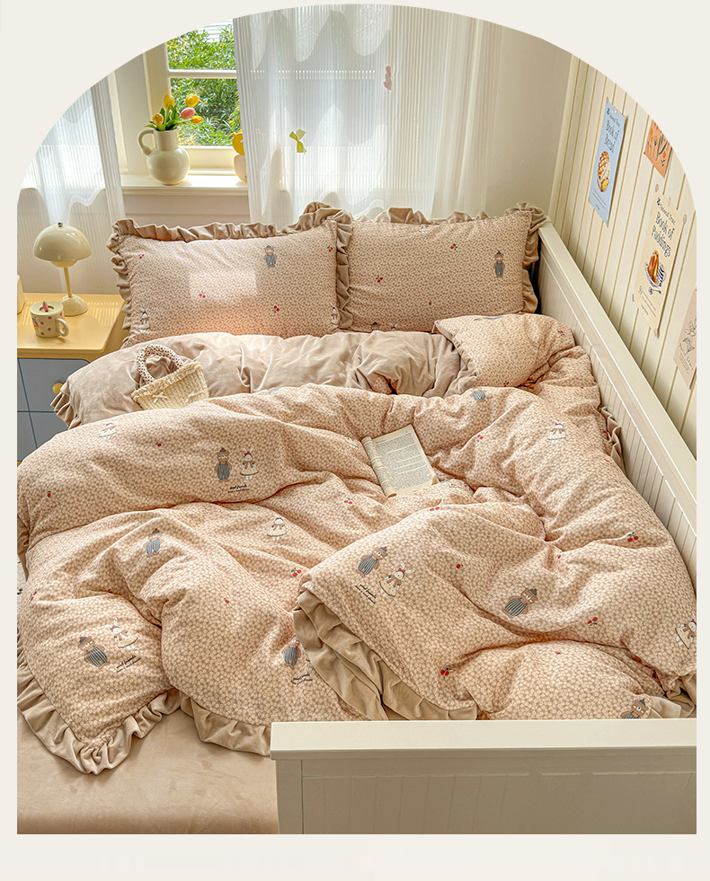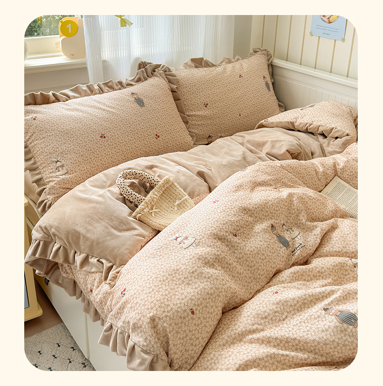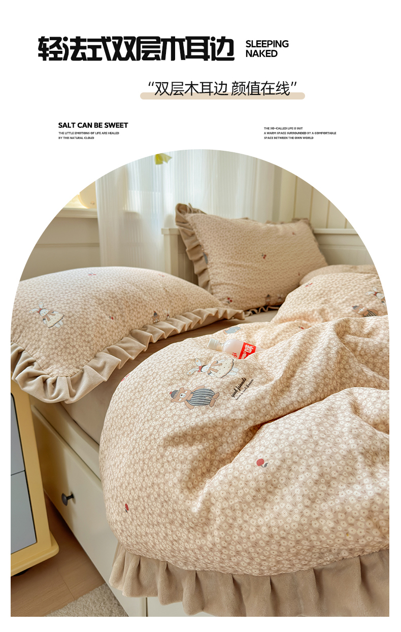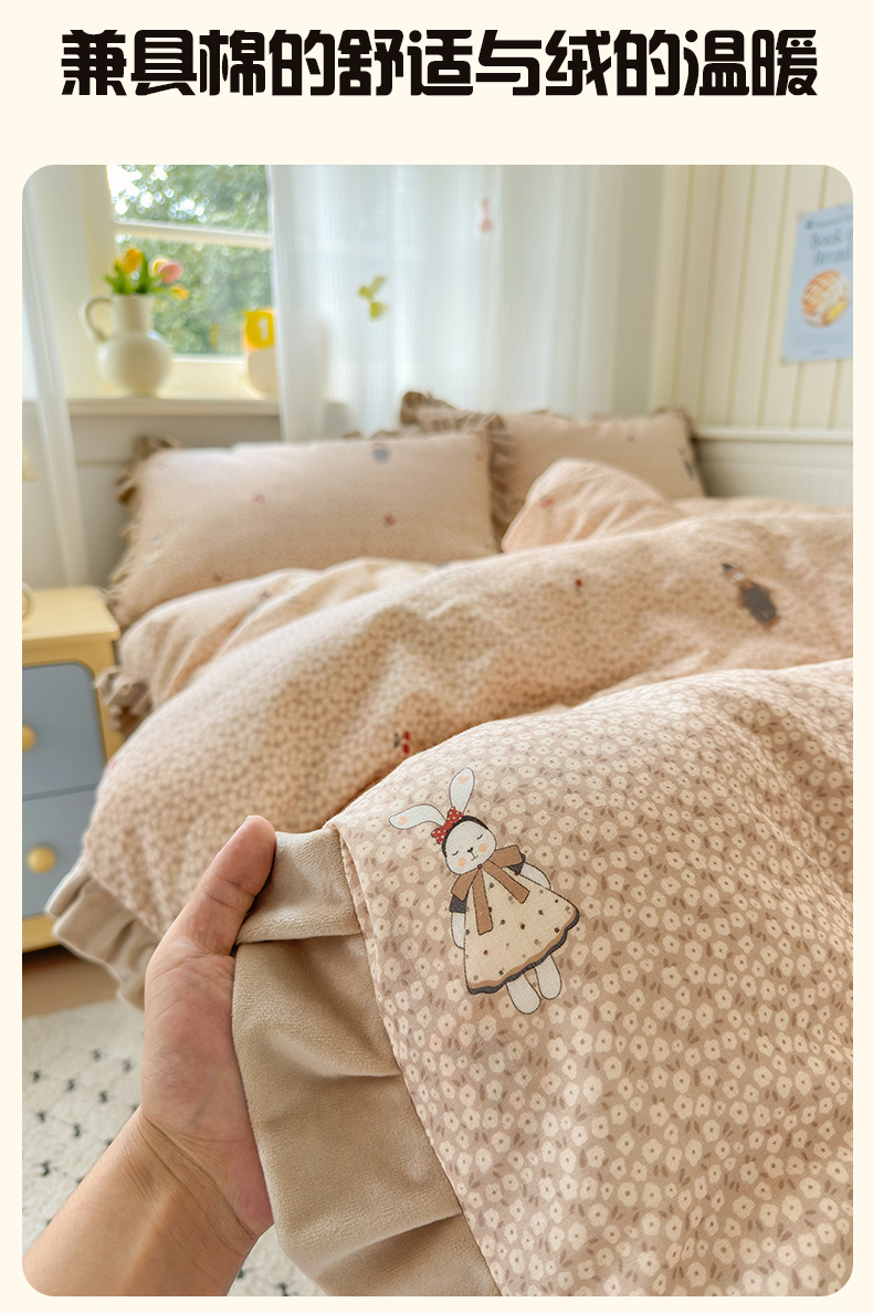 当前位置: 91家纺网 > 商品网购 > 床品套件 > 四件套 > 全棉普通四件套 > 淑女公社家纺 2025秋冬新款纯棉双层纱加韩国绒四件套 熊先生与兔小姐