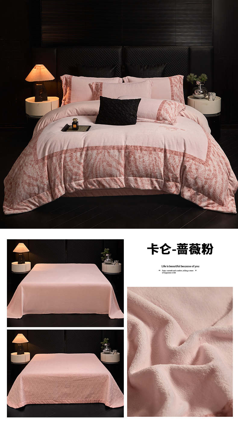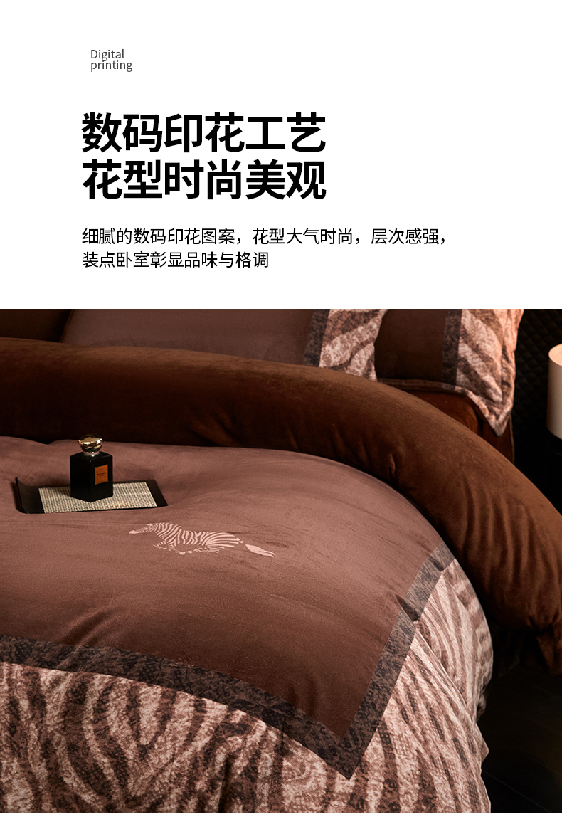 (总)新方向 2025新款 专版花型 240克全消光A类数码印花牛奶绒四件套床盖款-卡仑