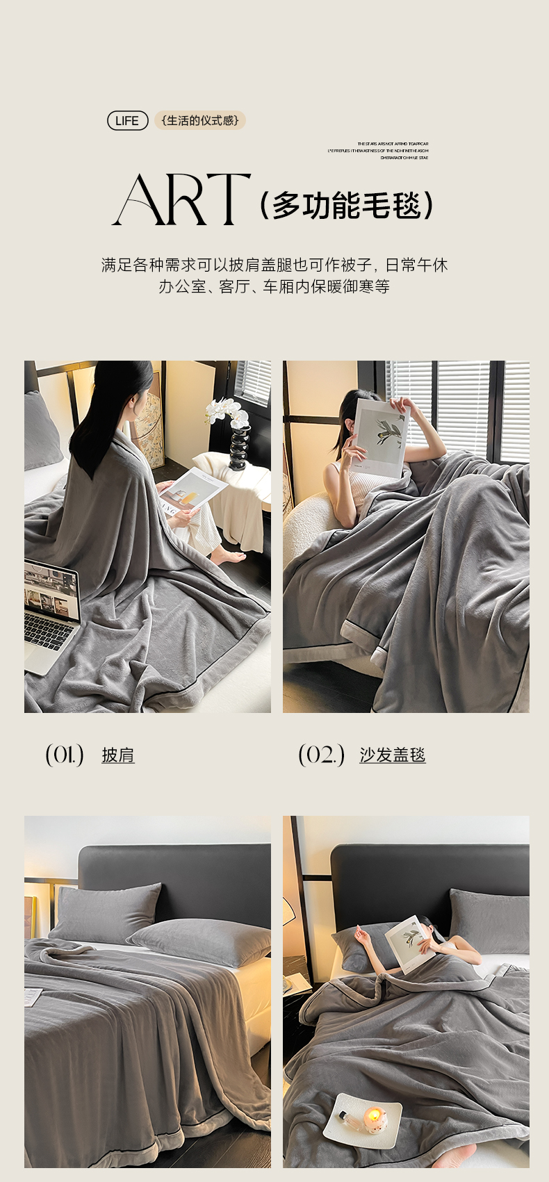 欧邦 2025新款加厚牛奶绒毛毯多功能盖毯毯子-素颜系列 素颜-浅灰