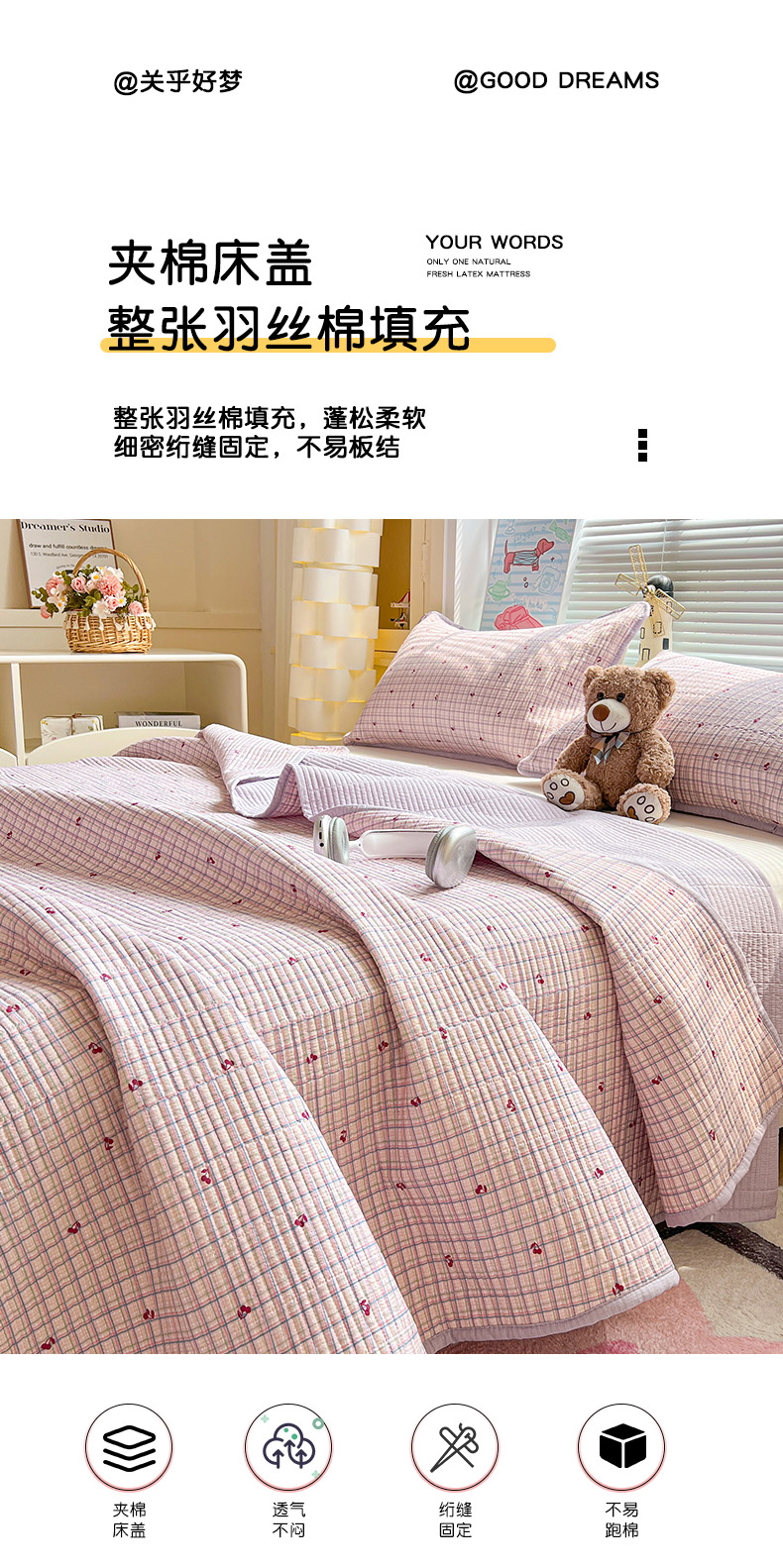 当前位置: 91家纺网 > 商品网购 > 被子 > 冬被 > 优选 2025新款木棉双层纱ins少女心可爱加厚豆豆冬被四件套床盖三件套暖梦小红书推荐 格子樱桃