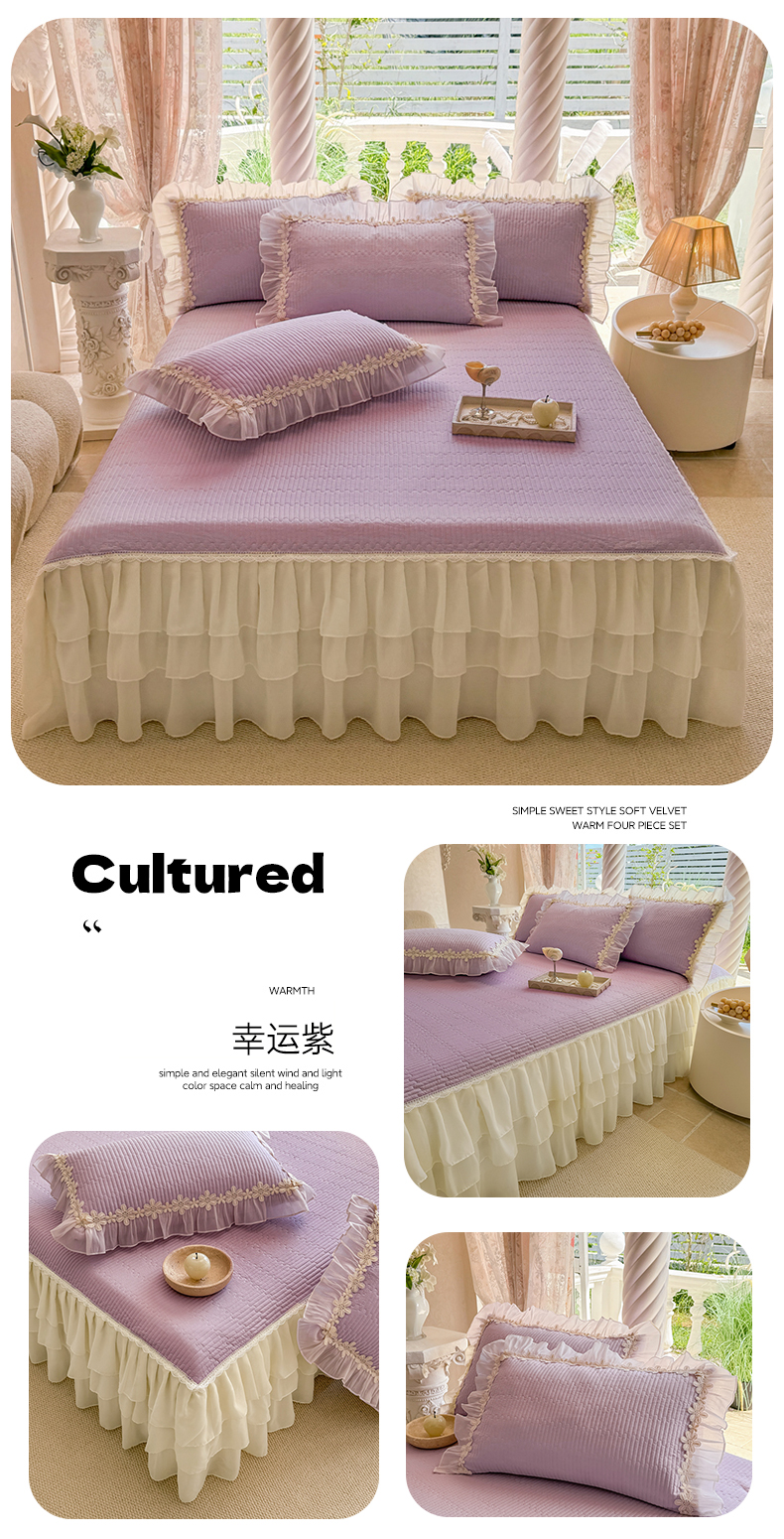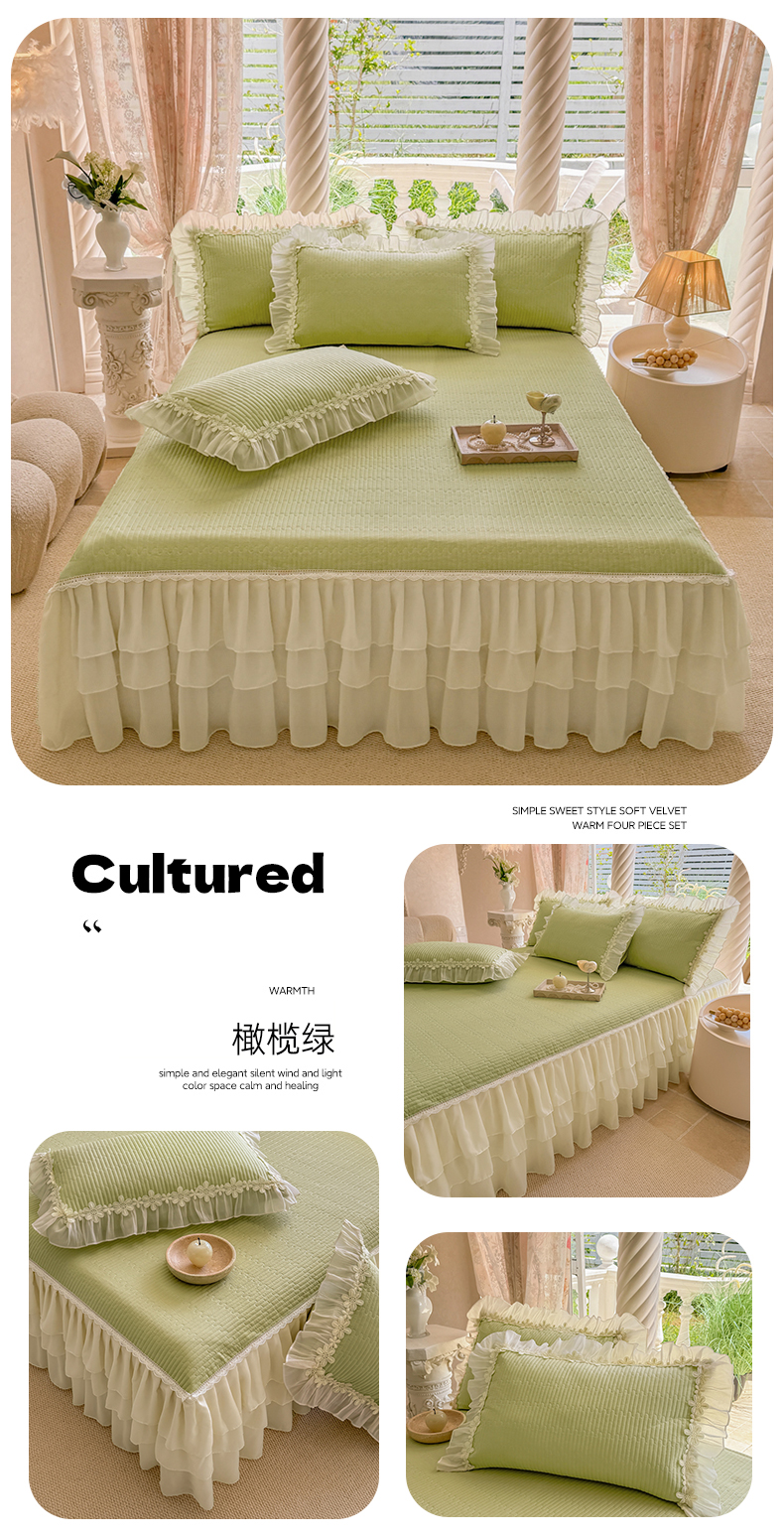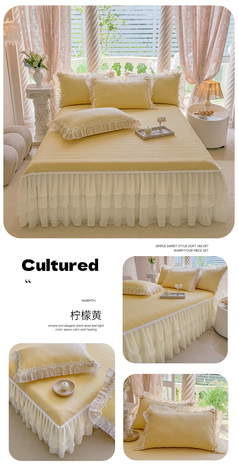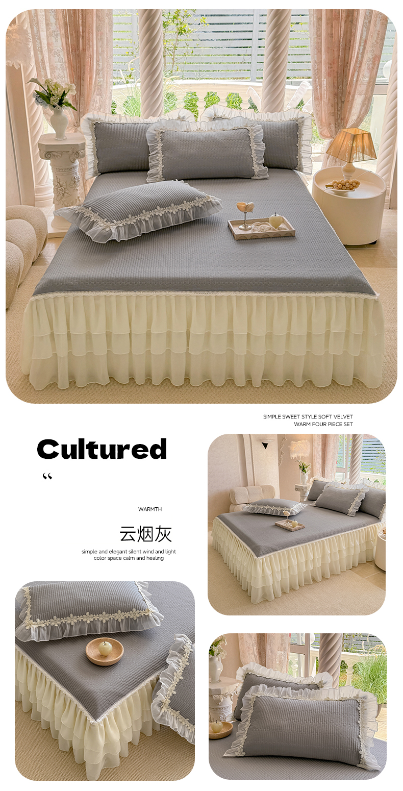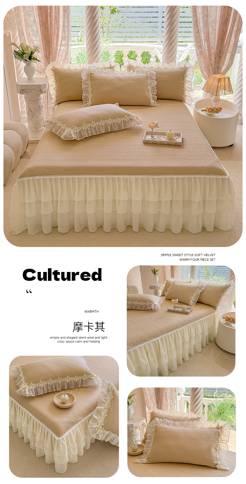 (总)依蔓羽 2026年新款A类全棉色织水洗棉夹棉绗缝床裙四件套米朵【专注面料品质和做工】 100%全棉精梳紧密纺色织水洗棉面料,柔软舒适,退货率低(并非市面上粗糙气流纺面料),春野咖,丹华咖,粉咖大格,灰咖大格,橘简格,可可灰,木槿黑,沐风粉,沐风咖,英伦橙,映像格灰,映像格蓝,映像格绿,云素咖,芸素红