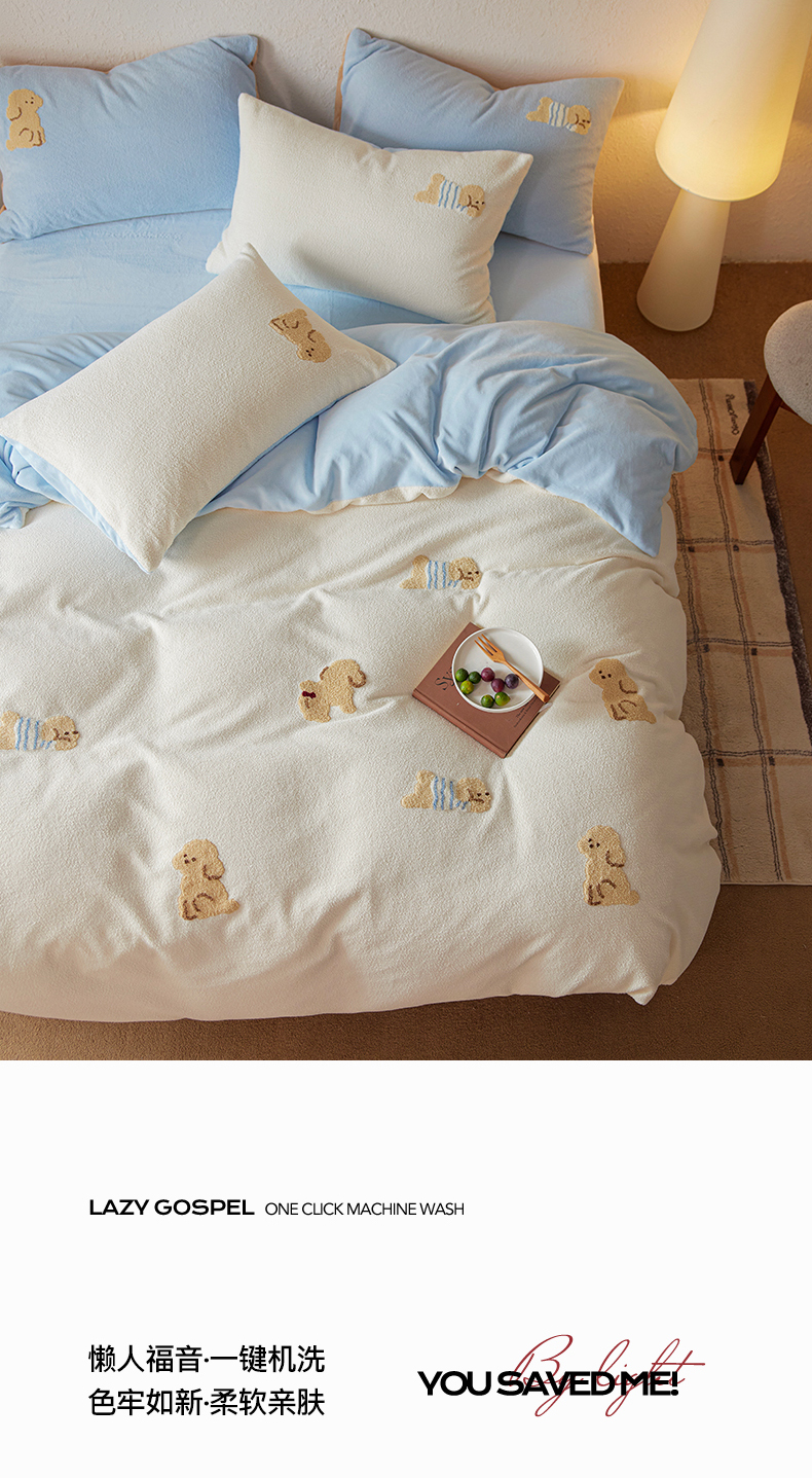 当前位置: 91家纺网 > 商品网购 > 床品套件 > 四件套 > 毛巾绣四件套 > 风向标家纺 2025新款卡通全消光暖呢绒毛巾绣四件套-风格一 海魂衫小狗-蓝白