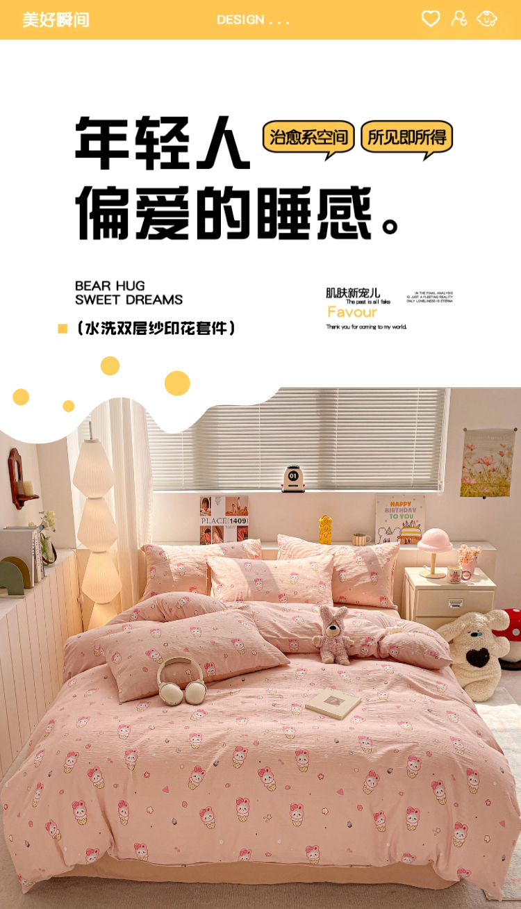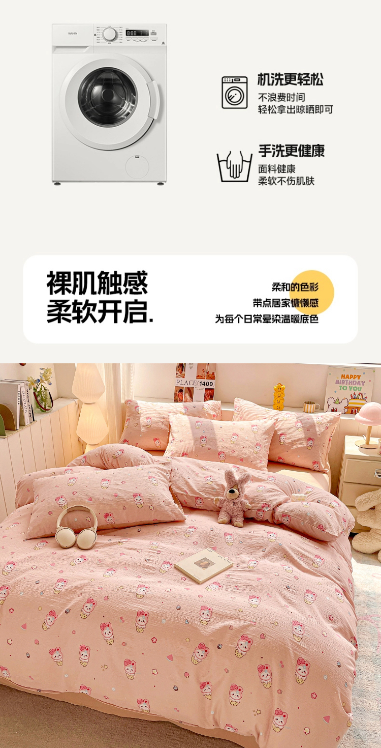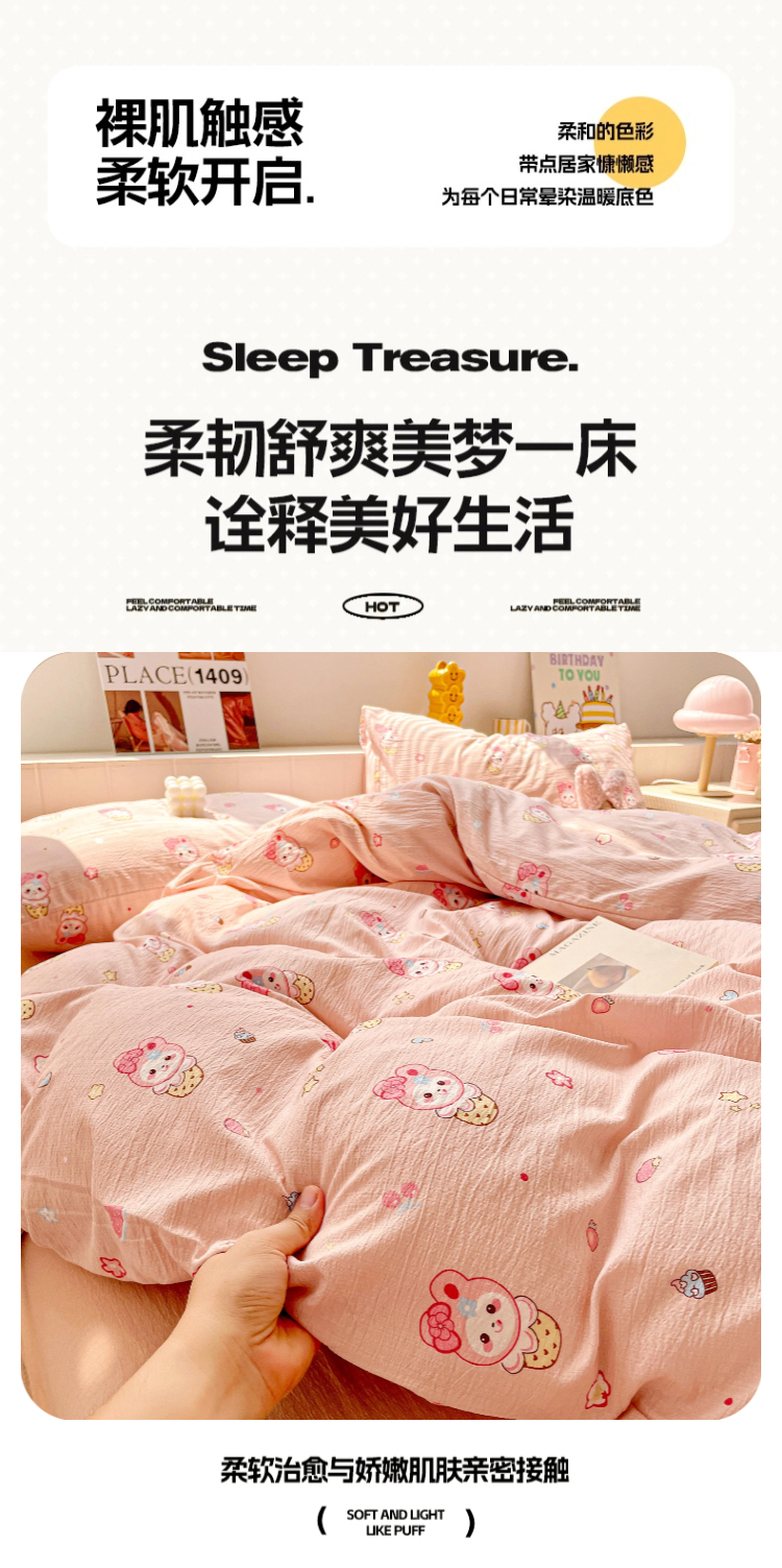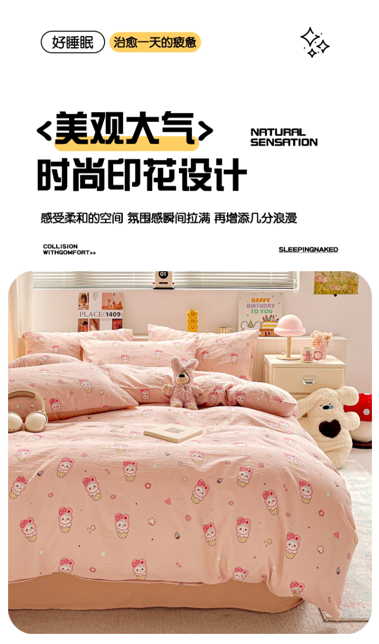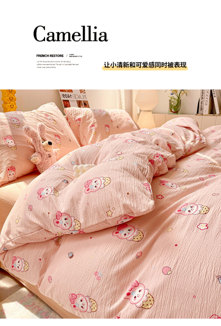 当前位置: 91家纺网 > 商品网购 > 床品套件 > 四件套 > 化纤普通四件套 > 维娜斯家纺 2025新款印花双层纱四件套亲肤柔软适合裸睡 小兔莉莉