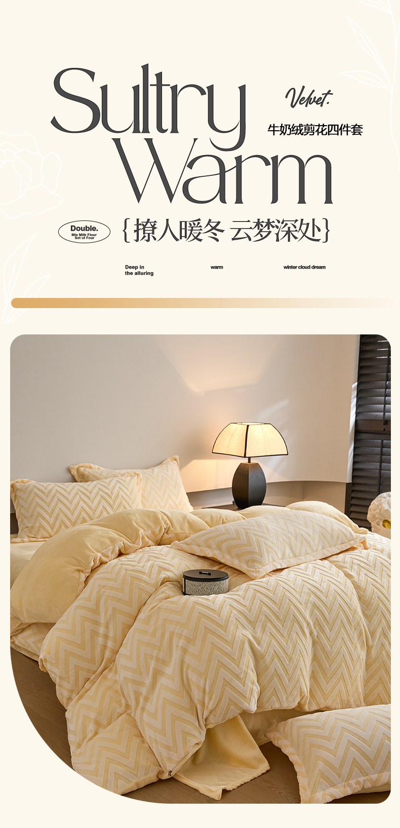 商品名称:(总)源舍家纺 2025新款高克重牛奶绒法莱绒雕花剪花四件套