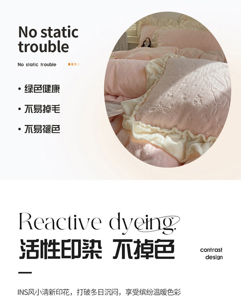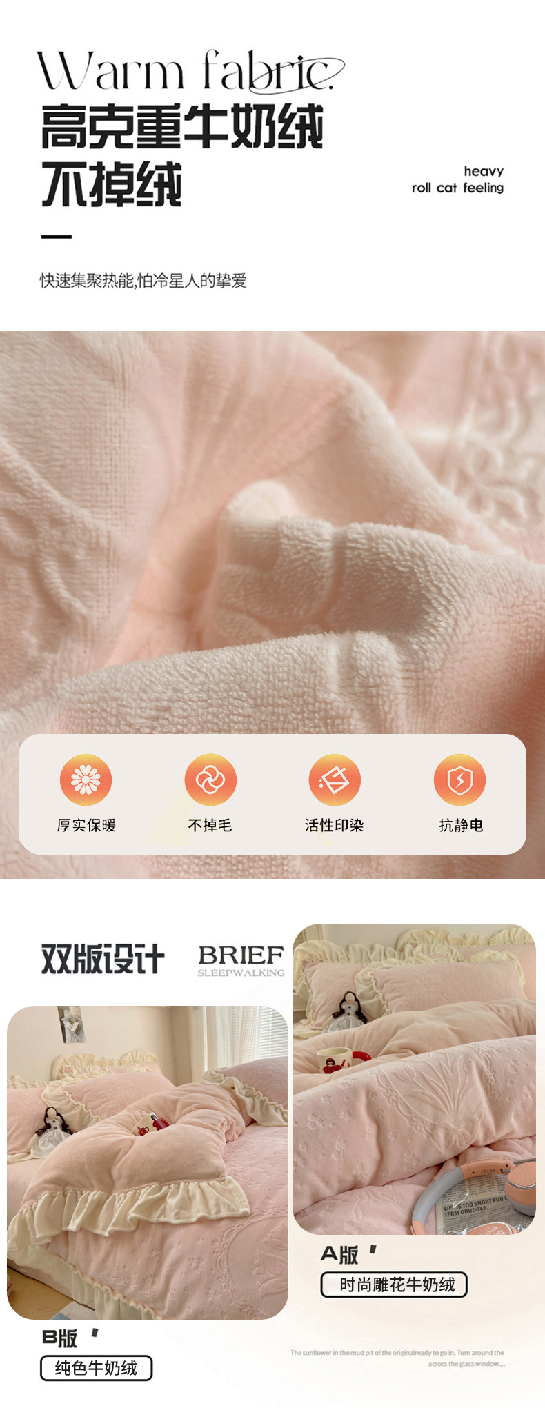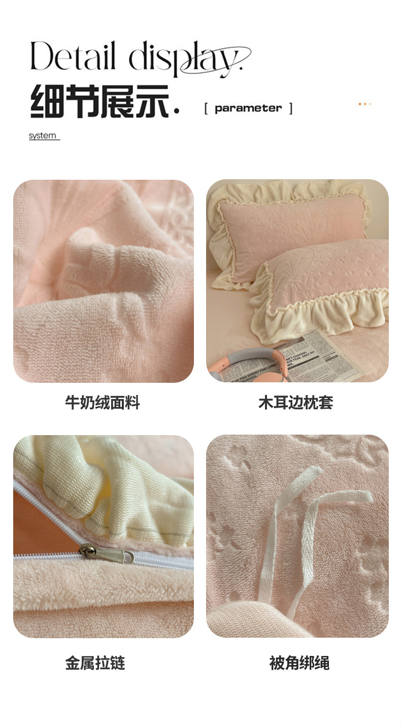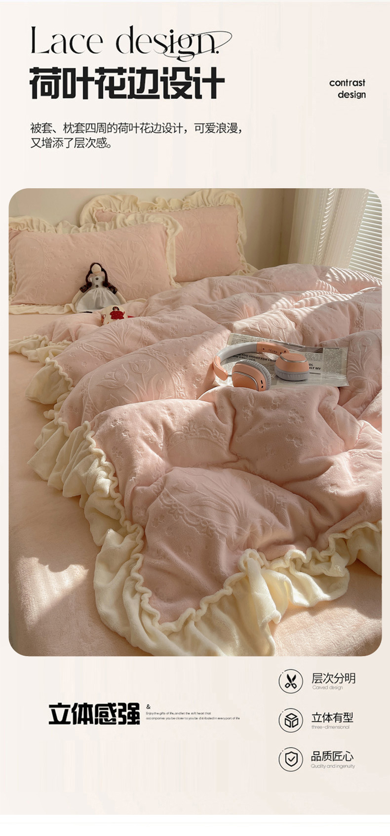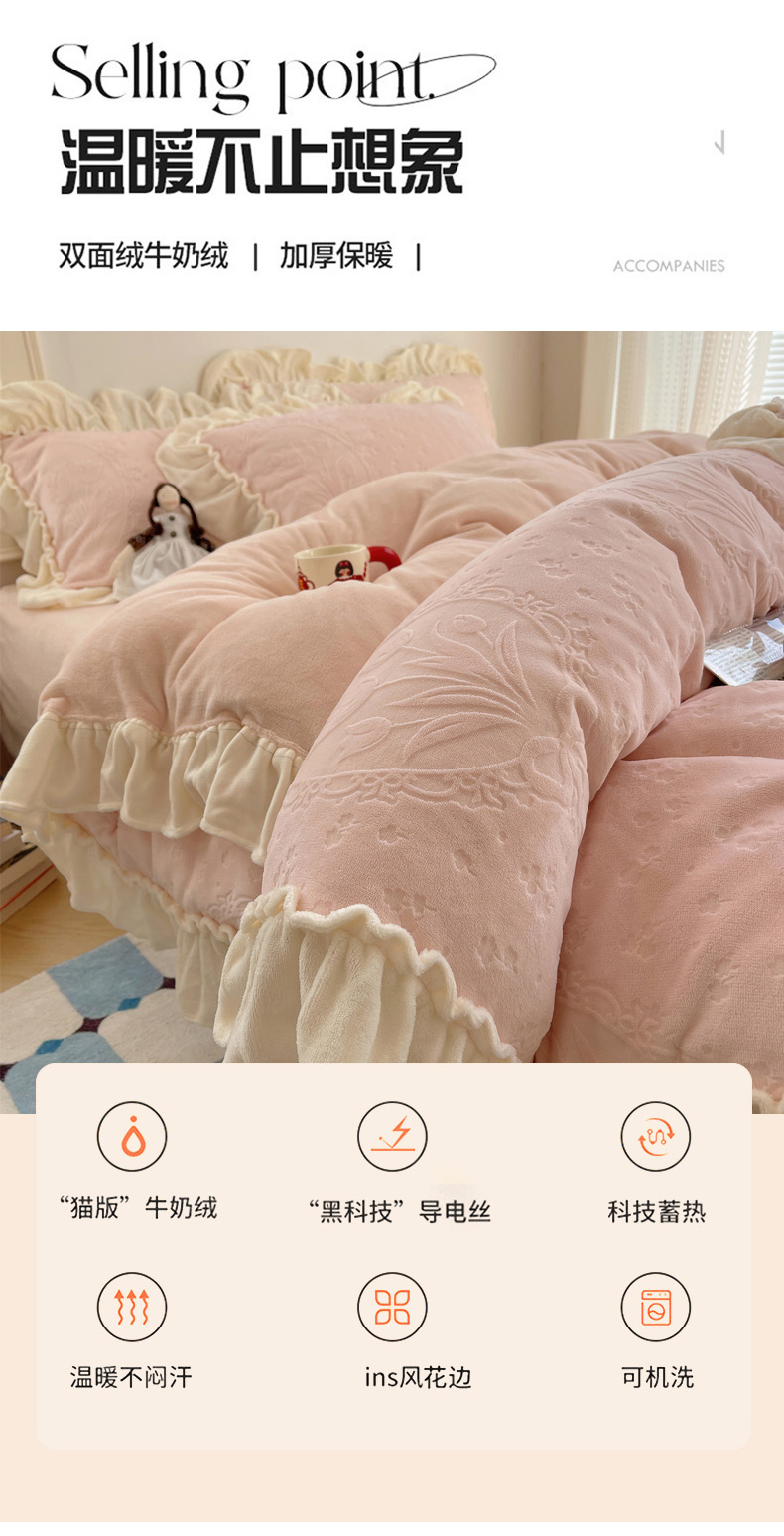 当前位置: 91家纺网 > 商品网购 > 床品套件 > 四件套 > 牛奶绒四件套 > 丽涵家纺 2025新款雕花牛奶绒公主风花边四件套郁香漫境 郁香漫境-粉
