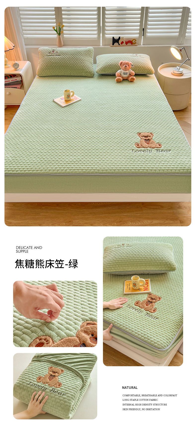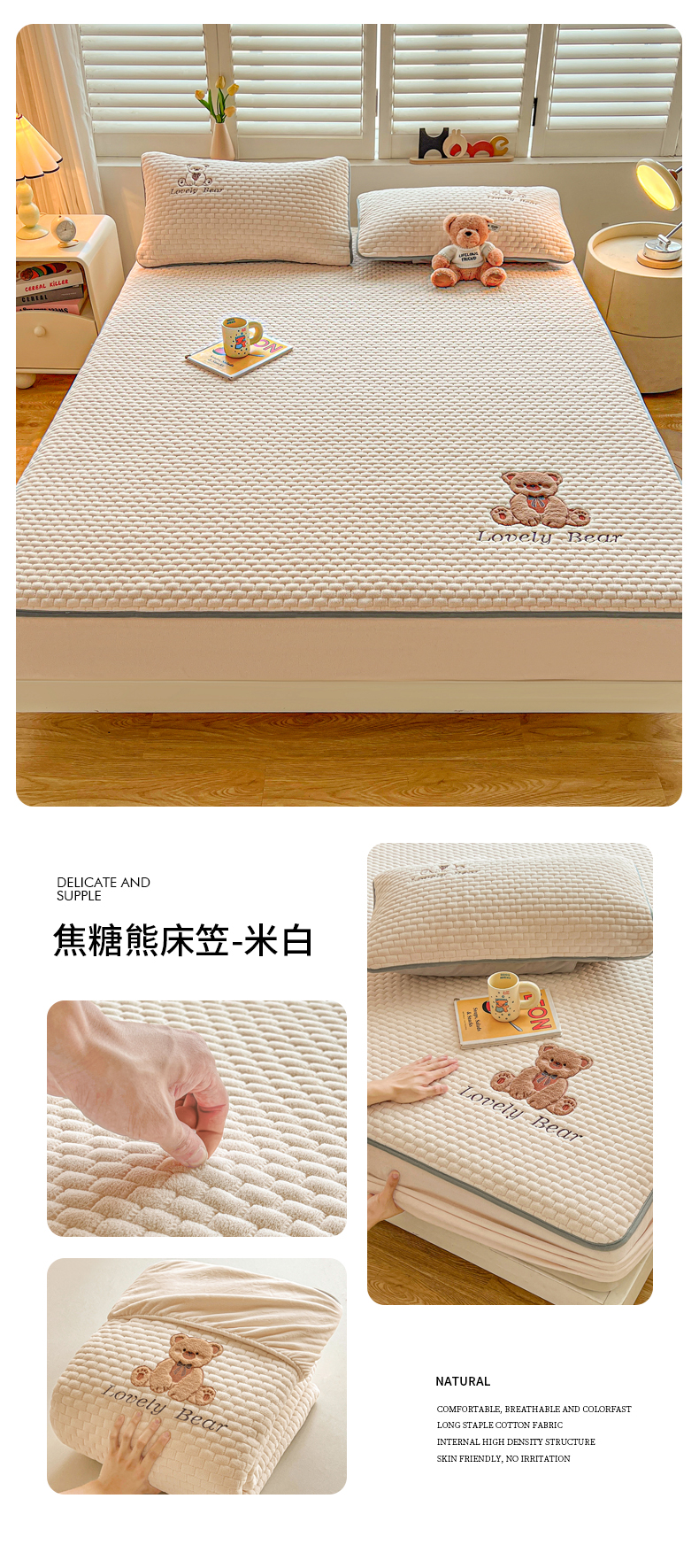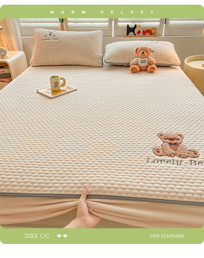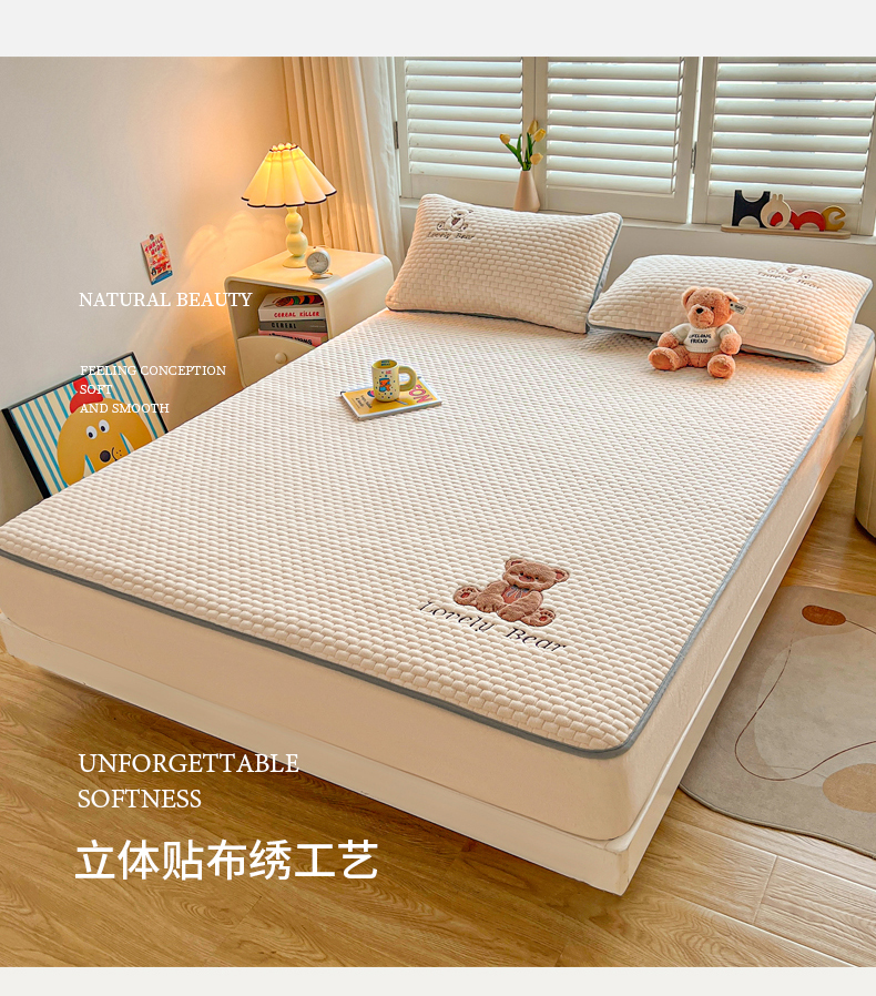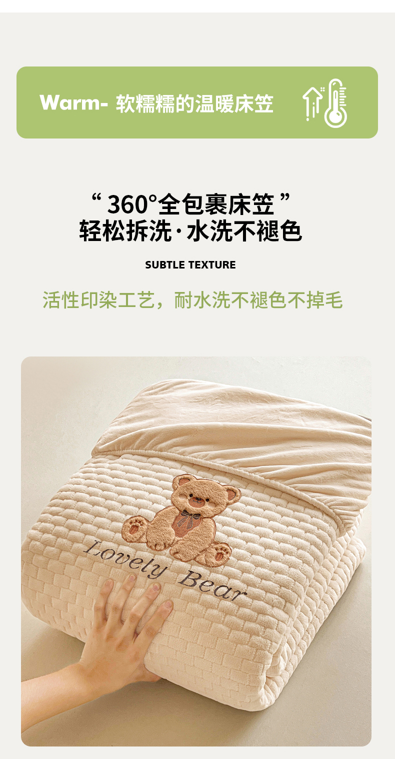 (总)爱思凯家纺 2025新款加厚泡泡绒纯色床笠-松饼熊,组合图,松饼熊床笠-奶白,松饼熊床笠-粉,松饼熊床笠-灰,松饼熊床笠-卡其,松饼熊床笠-蓝灰,松饼熊床笠-绿