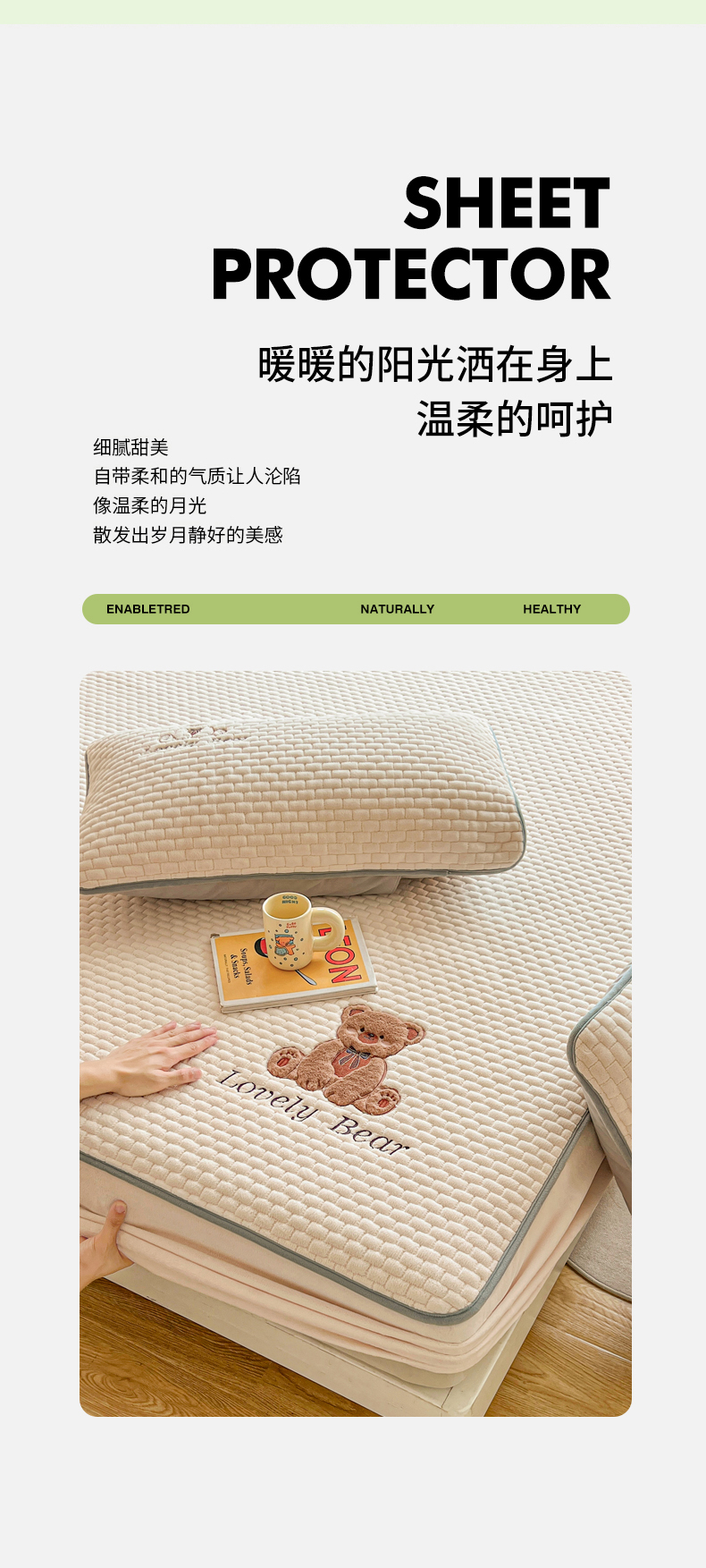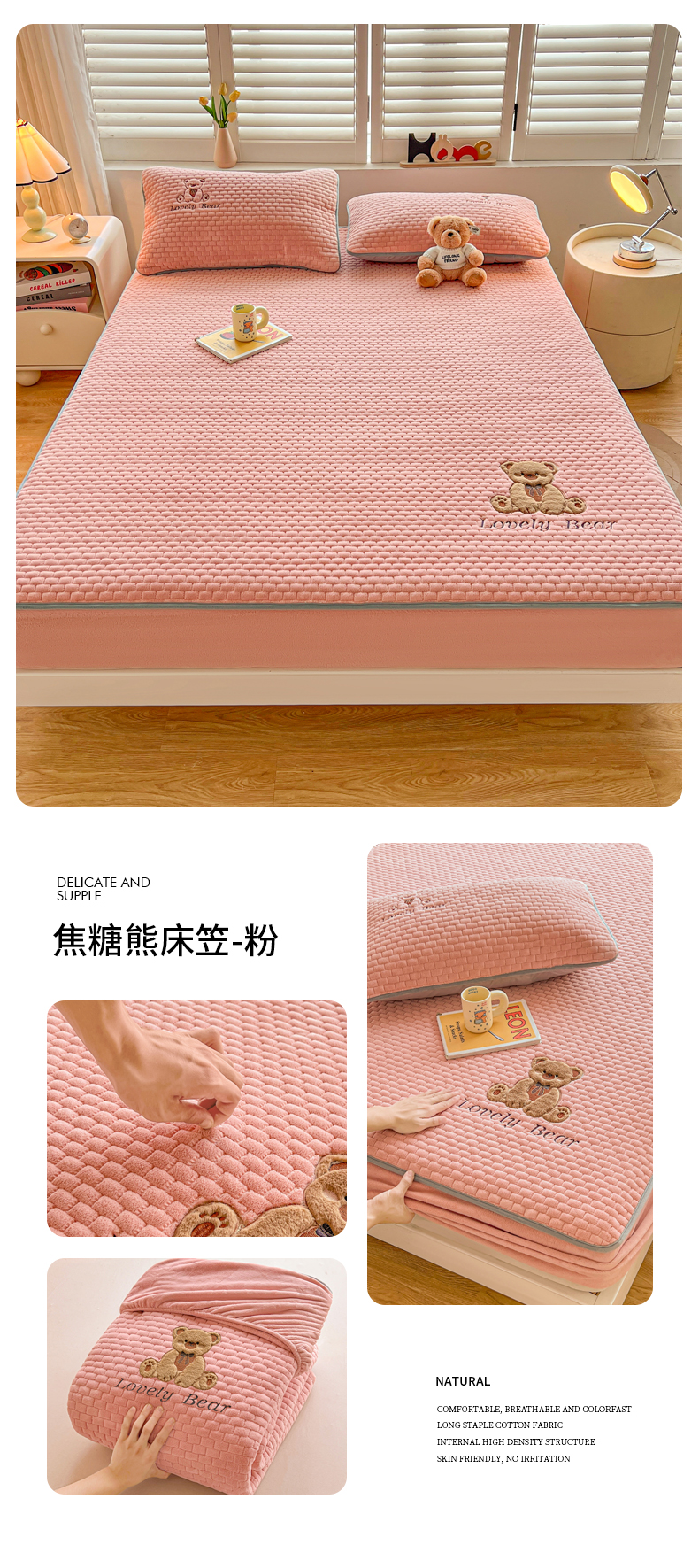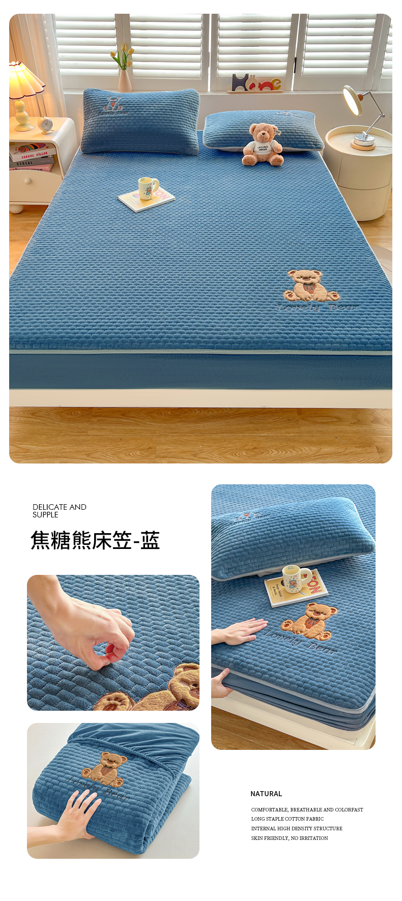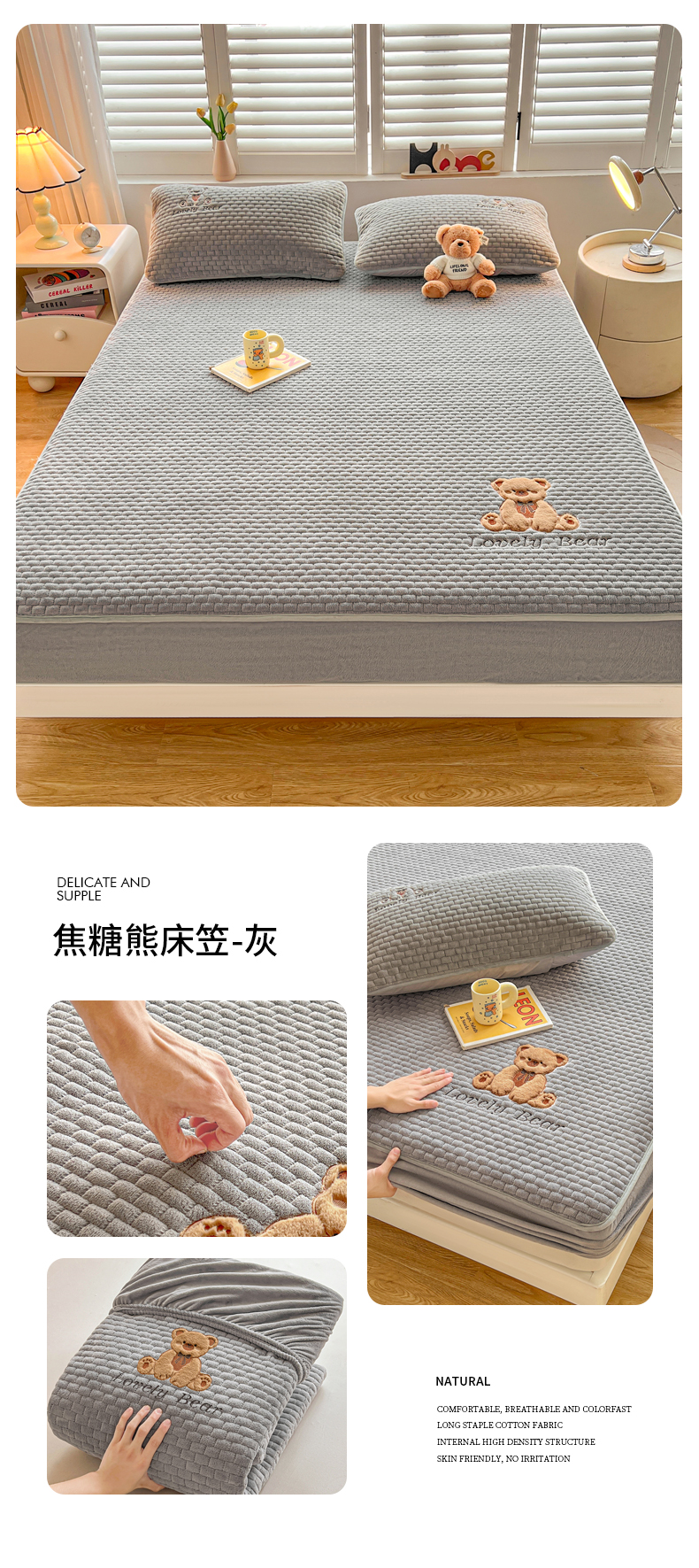 (总)爱思凯家纺 2025新款加厚泡泡绒纯色床笠-松饼熊,组合图,松饼熊床笠-奶白,松饼熊床笠-粉,松饼熊床笠-灰,松饼熊床笠-卡其,松饼熊床笠-蓝灰,松饼熊床笠-绿