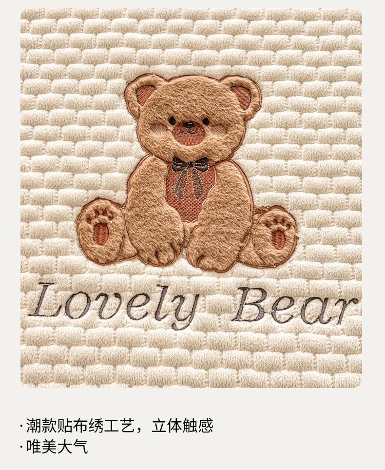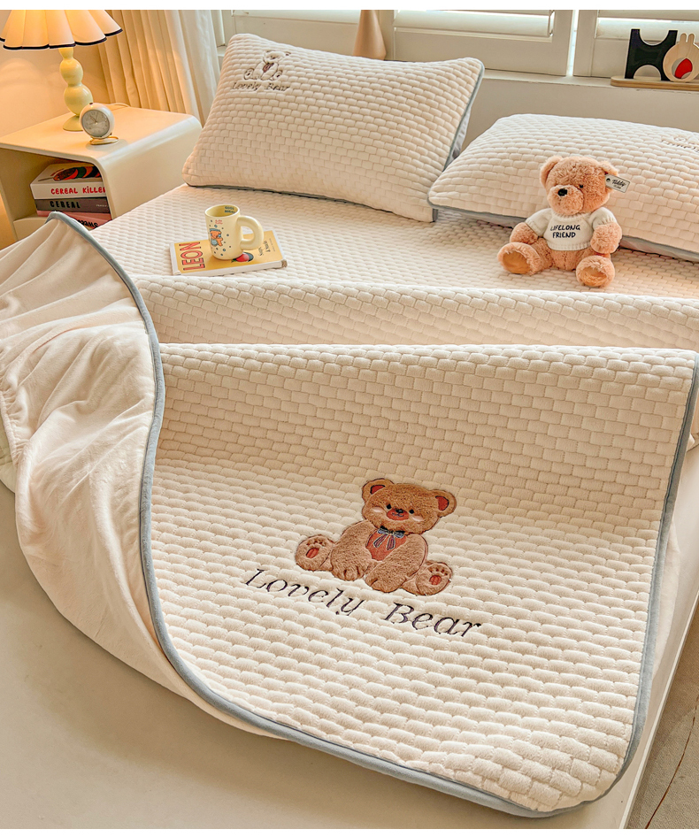 (总)爱思凯家纺 2025新款学生儿童房泡泡绒床单-松饼熊,松饼熊床单-卡其,松饼熊床单-粉,松饼熊床单-灰,松饼熊床单-蓝灰,松饼熊床单-绿,松饼熊床单-奶白