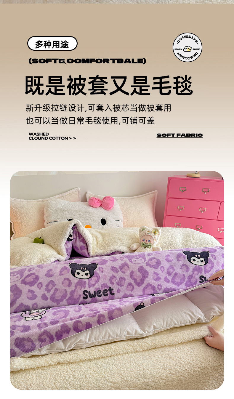 商品名称:艾特你 2025新款多功能羊羔绒牛奶绒单毛毯单被套 羊-淘气