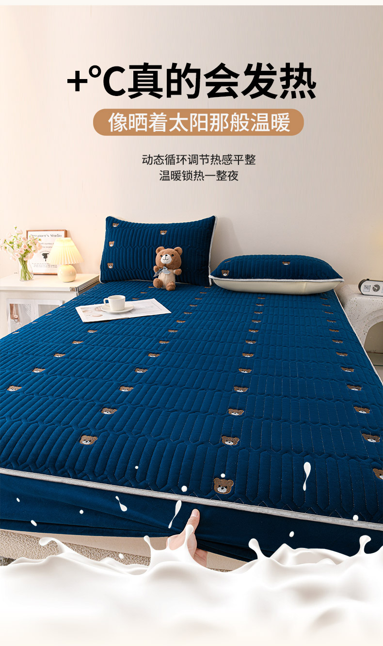 • 91家纺网 家纺一手货源 找家纺 云木里 2025新款秋冬牛奶绒刺绣夹棉床笠 三色熊-蓝色