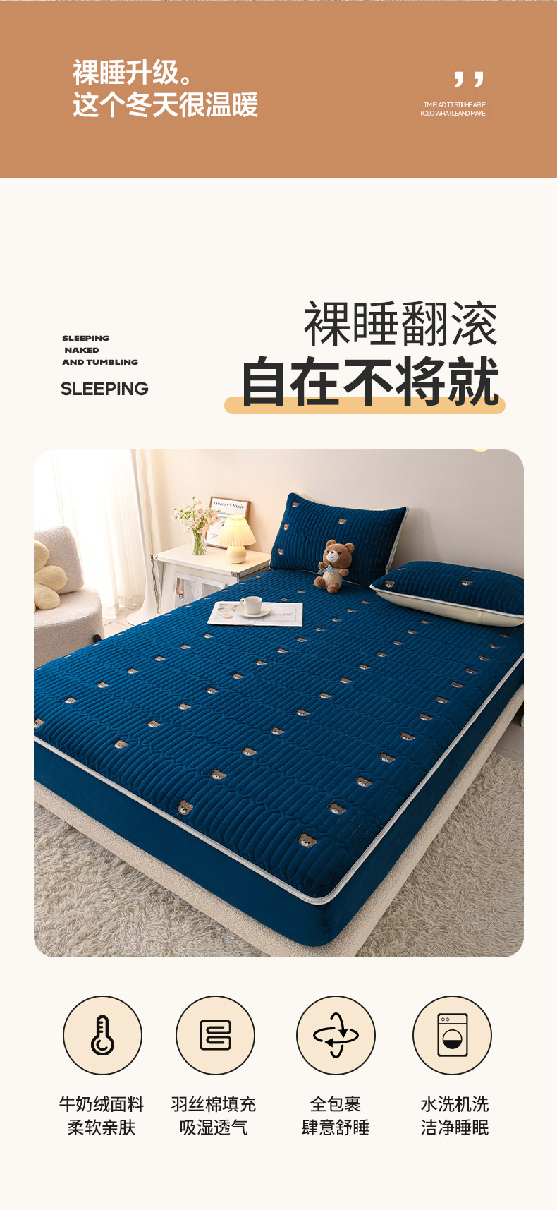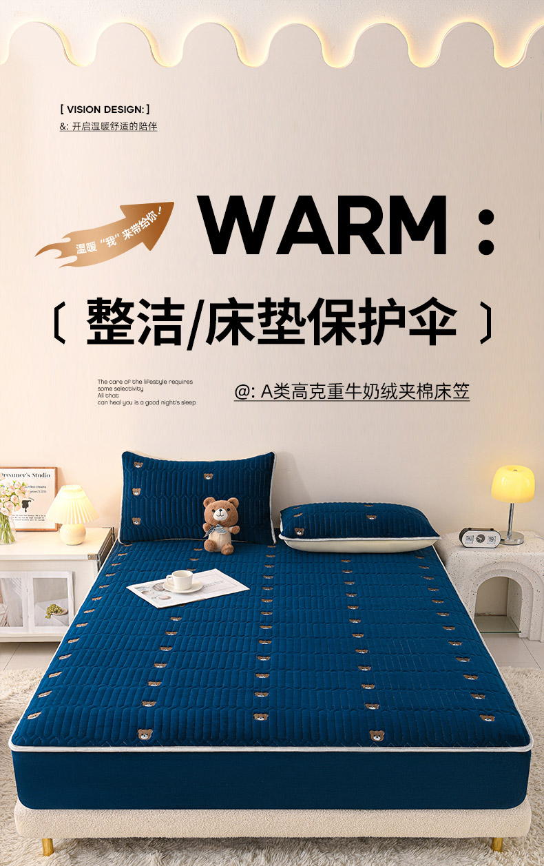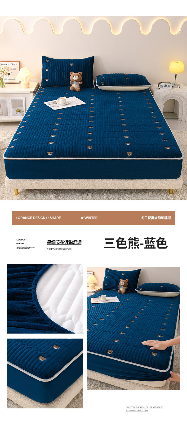 云木里 2025新款秋冬牛奶绒刺绣夹棉床笠 三色熊-蓝色